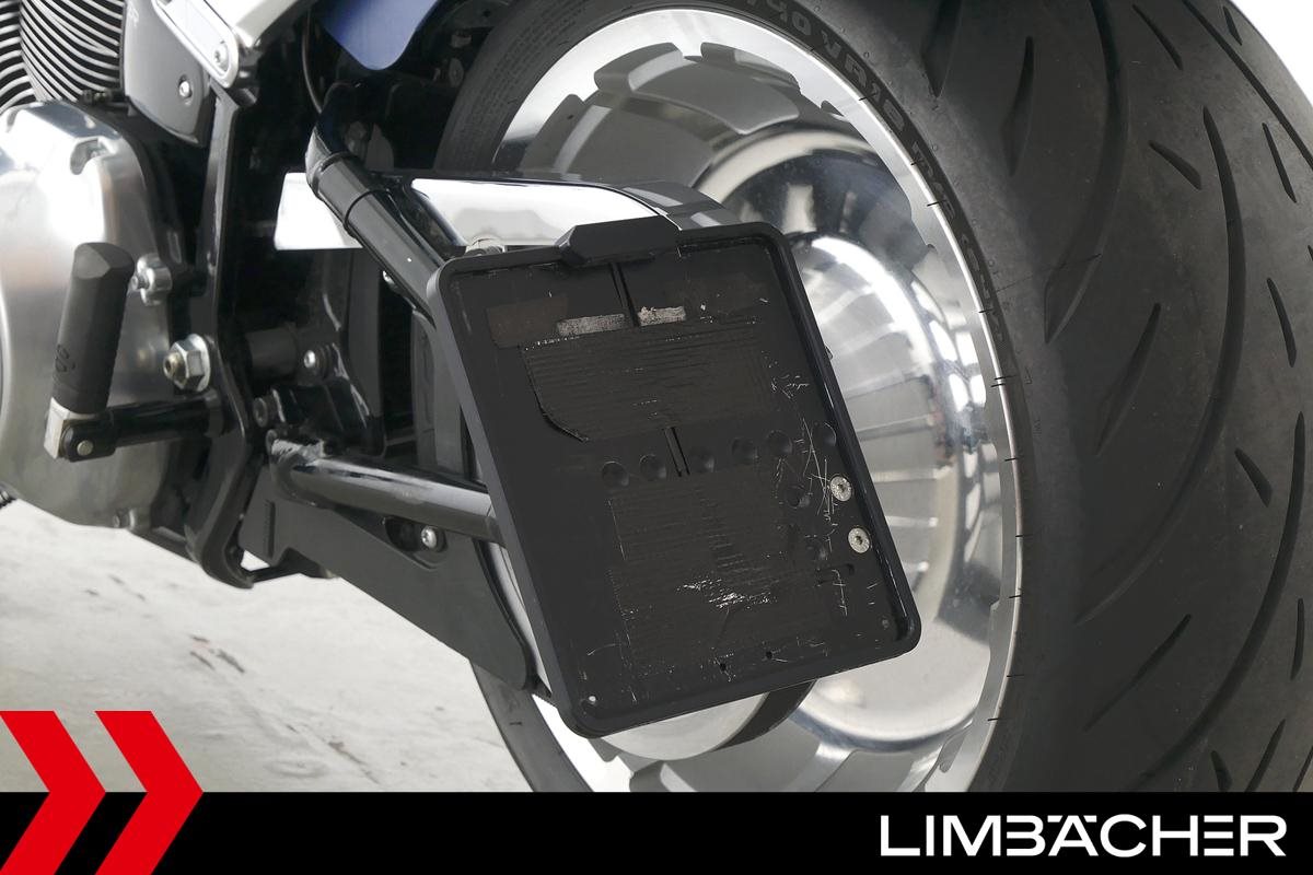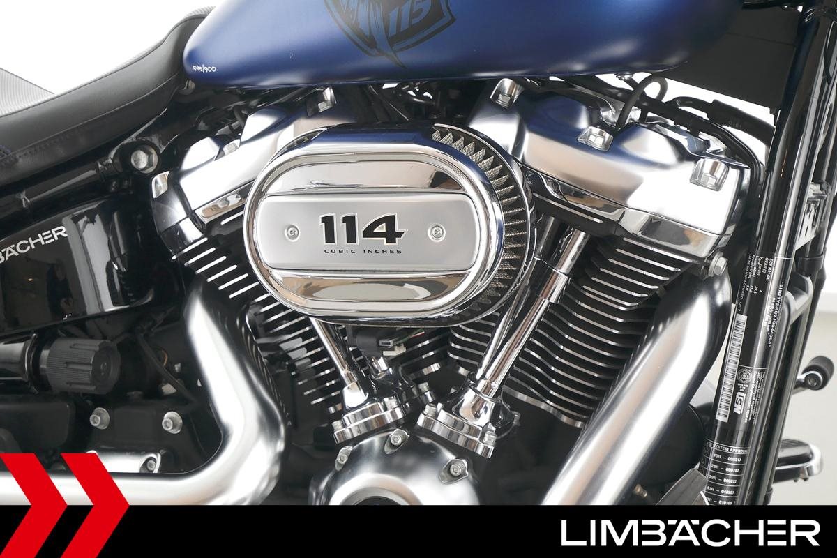 Eine Harley-Davidson Softail Fat Boy 114 Anniversary FLFBS ANX in Topzustand u.a. mit seitlichem Kennzeichenhalter.