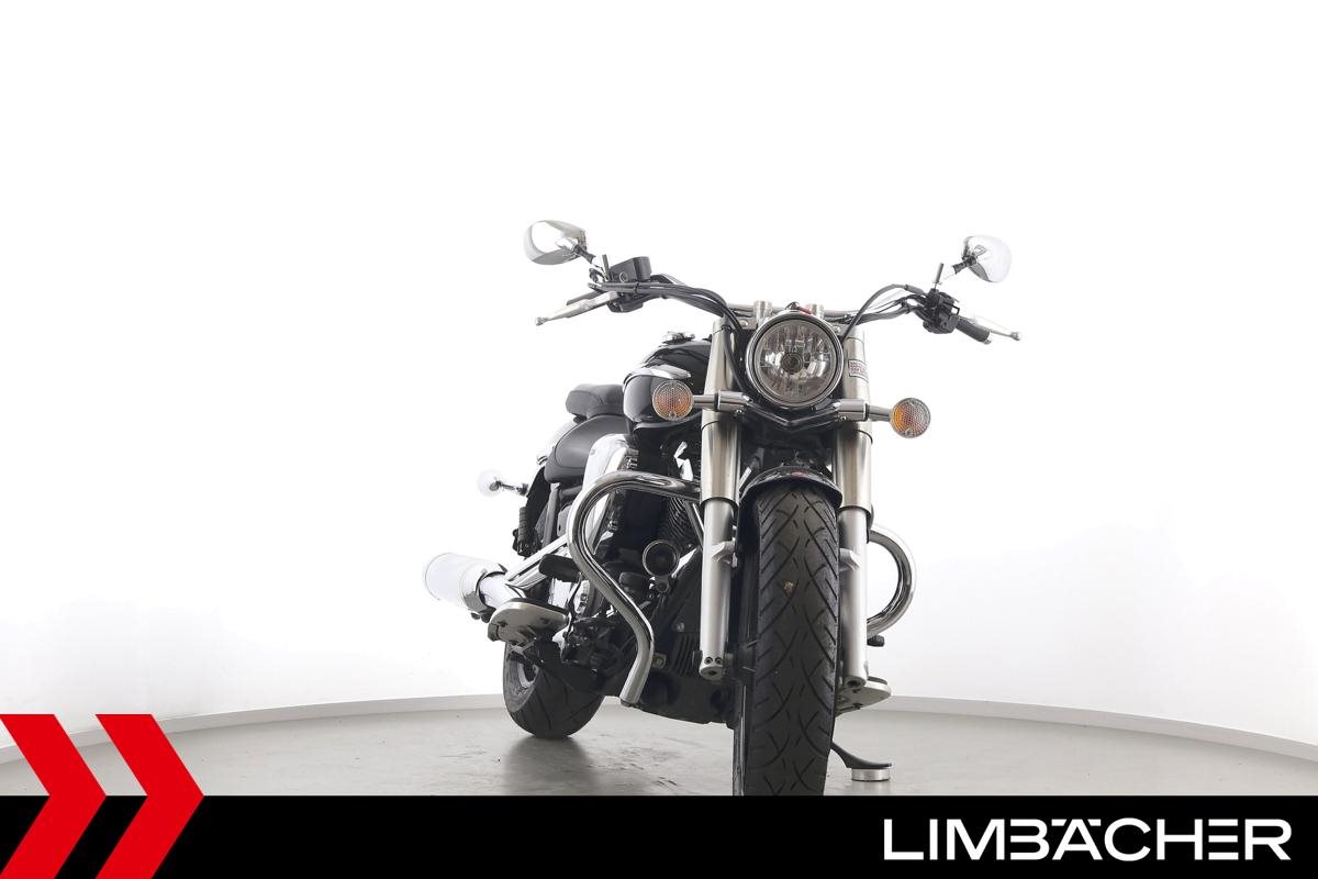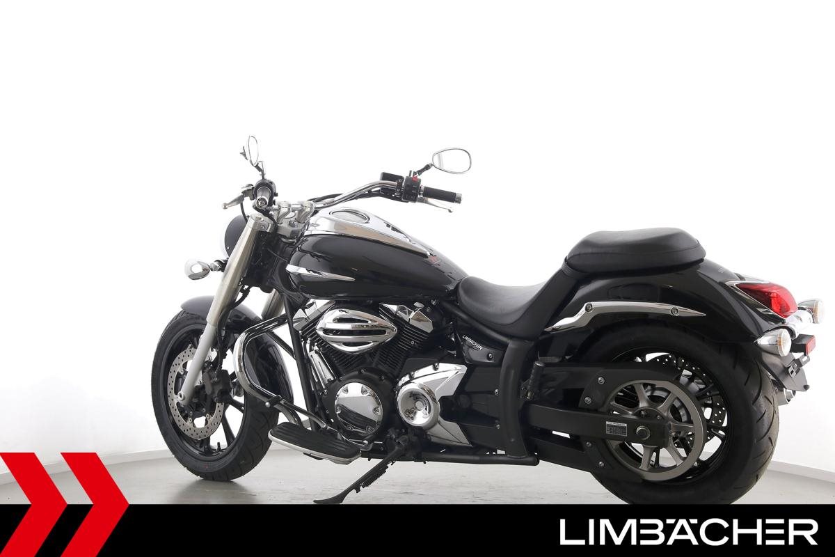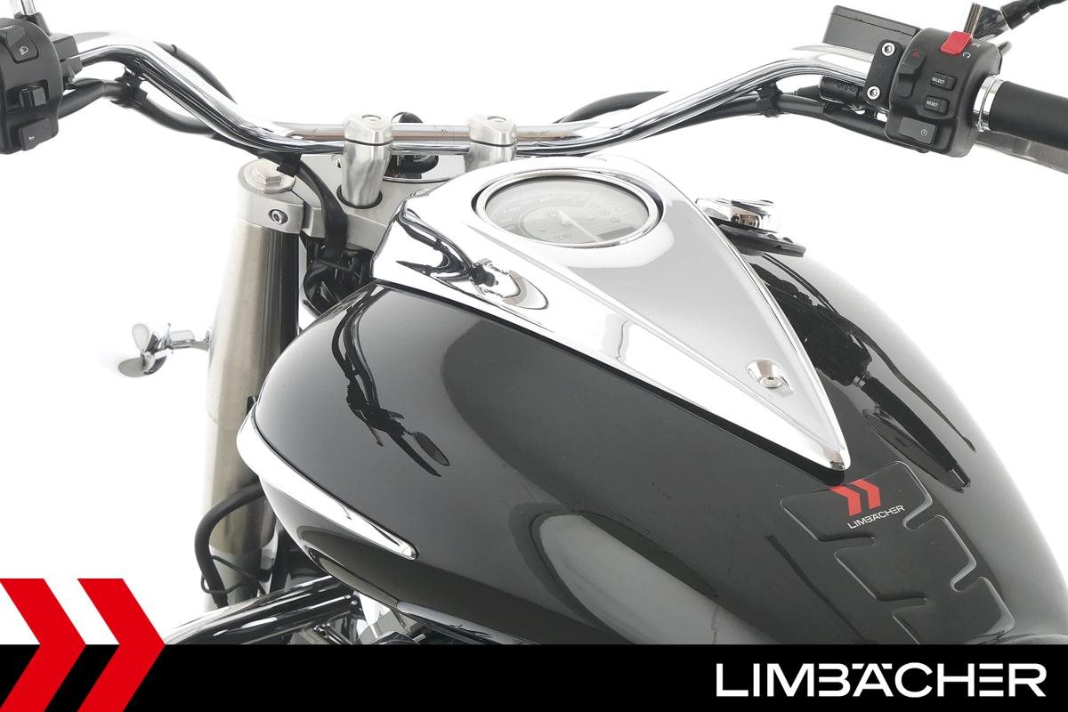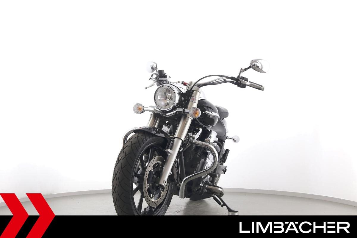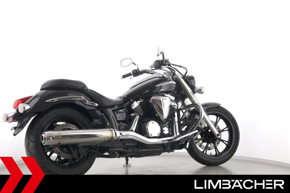 Eine Yamaha XVS 950 A Midnight Star in gepflegtem Zustand mit Sturzbügel und Tankpad.