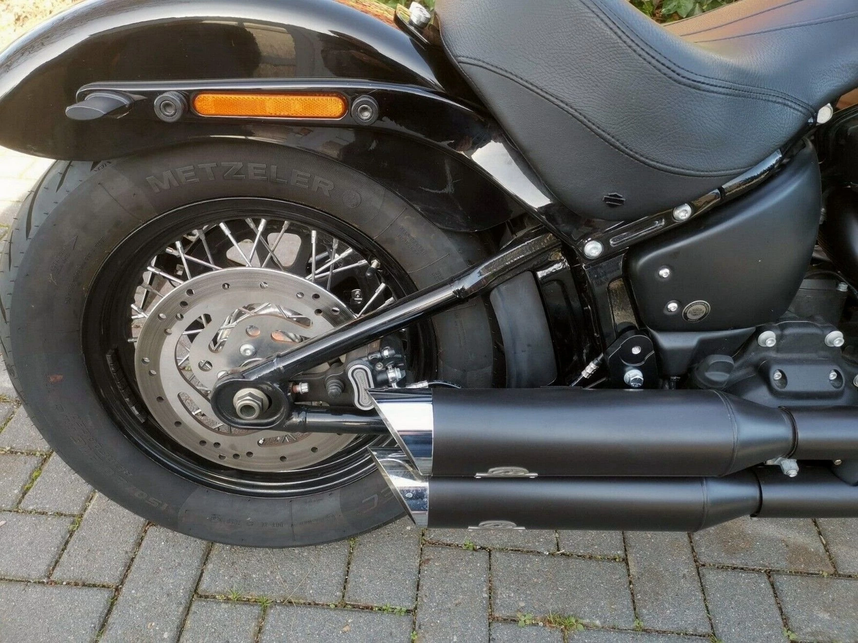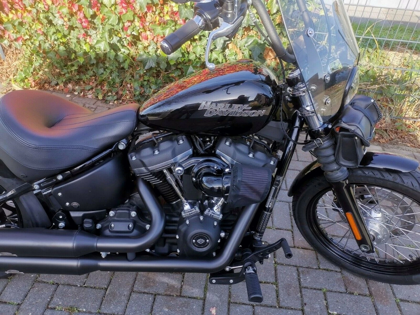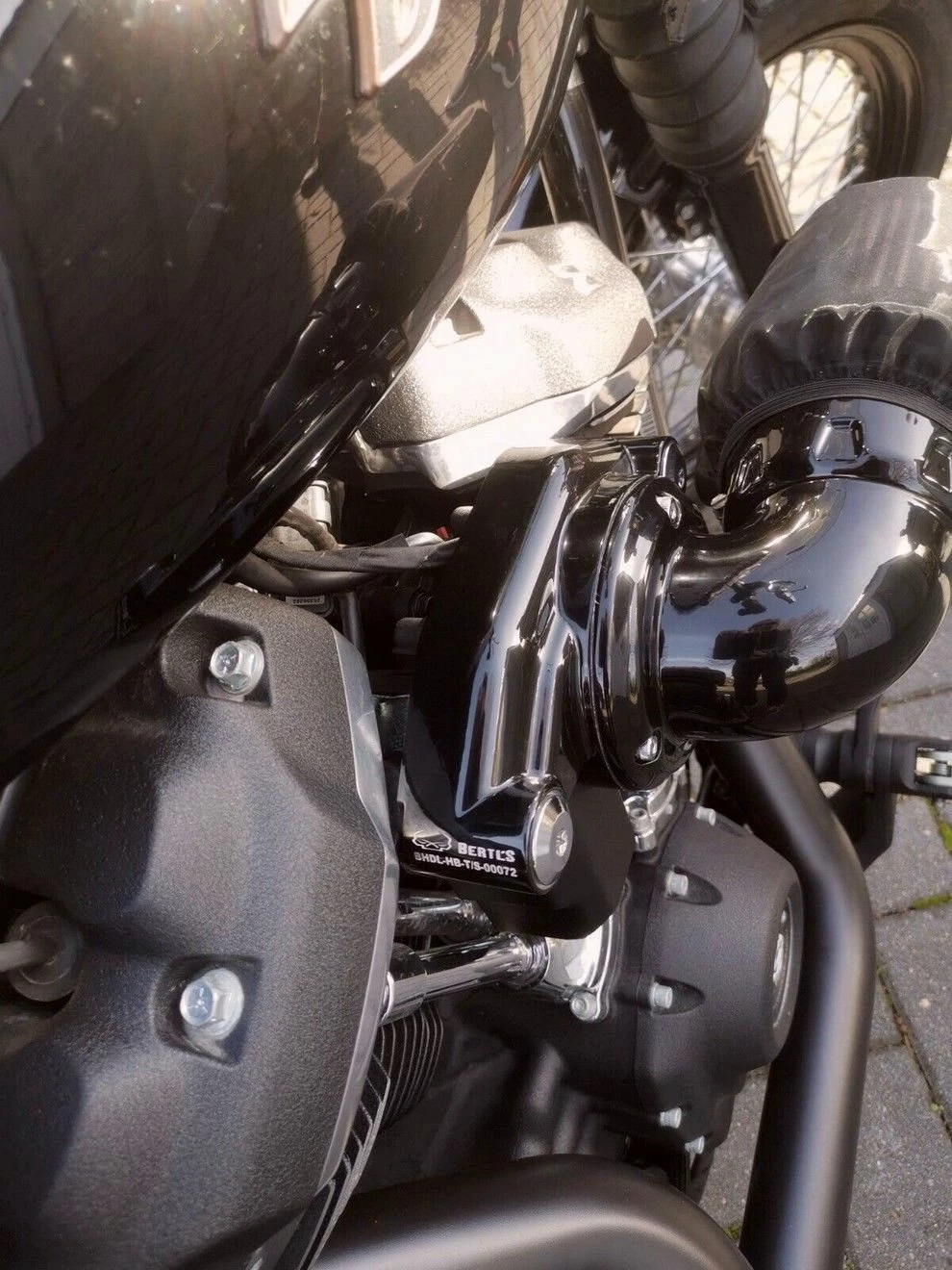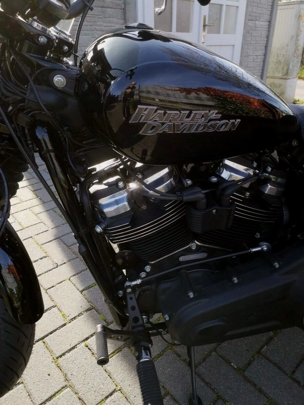 Gepflegte Street Bob, die durch viele An-und Umbauten zu einem ganz besonderen Motorrad geworden ist.