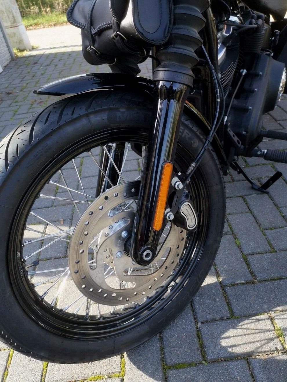 Gepflegte Street Bob, die durch viele An-und Umbauten zu einem ganz besonderen Motorrad geworden ist.