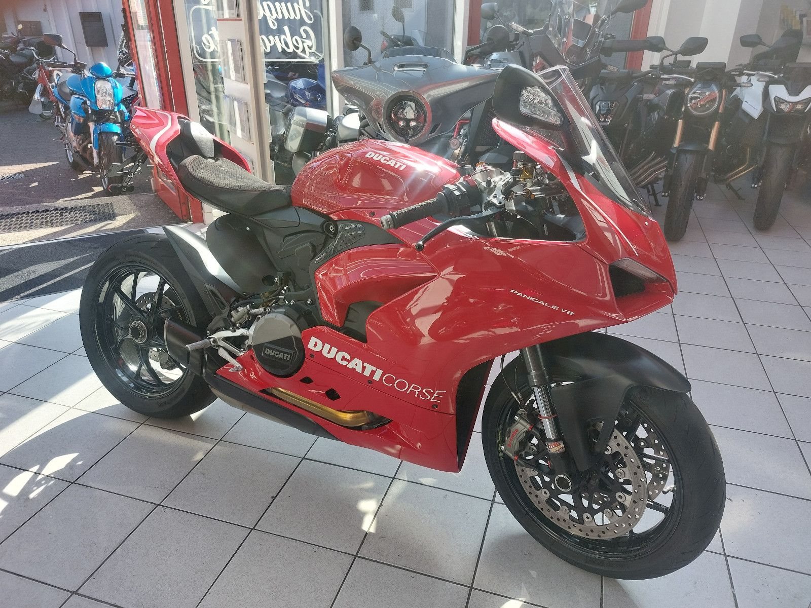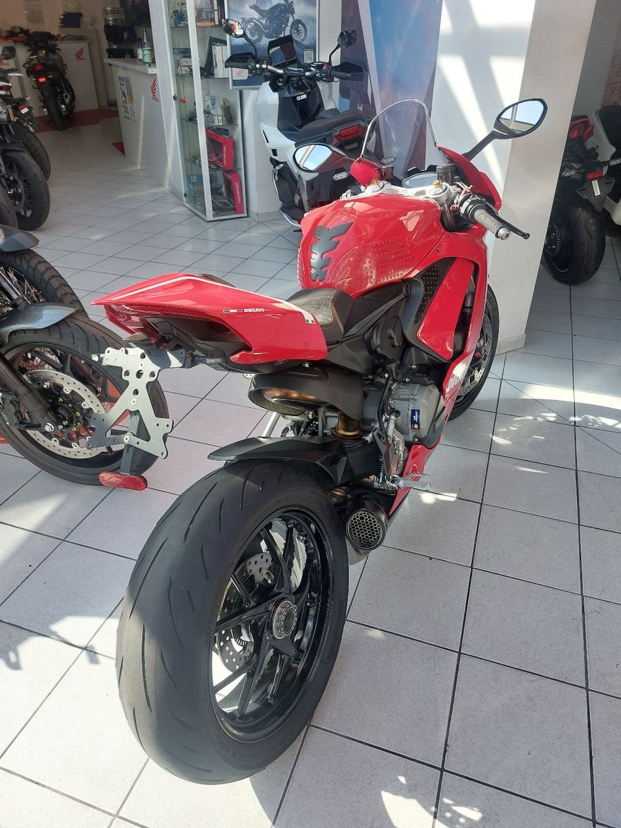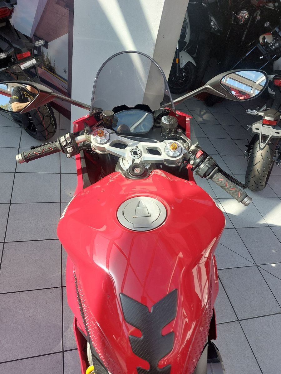 Erstzulassung 12/2019. Ducati Panigale V2, Modell 2020, Top Zustand, Öhlins Federbein, Öhlins Lenkungsdämpfer, Andreani Misano Evo Gabelumbau, Brembo Stylema Bremssättel mit 330 mm Brembo Bremsscheiben, Hauptbremszylinder der V4R montiert, Brembo Kupplungshebel, Quickshifter/Blibber, Soloheck mit Ritoma Kennzeichenhalter und Rizoma Stealth Blinkern, Hohe Racing Scheibe Ducati, Auspuffsiebblende mit Carbon, Carbon Fersenschoner, Carbon Kupplungsabdeckung, Carbon Stoßdämpferabdeckung, Stompgrip Tankschutz, Ducati Sitzbezug, Kettensatz neuwertig, dynamisches Bremslicht, Tank ist zusätzlcih mit Klarlack überzogen.