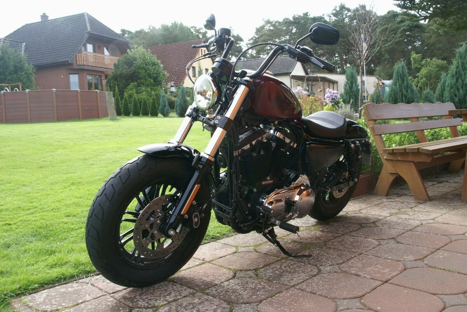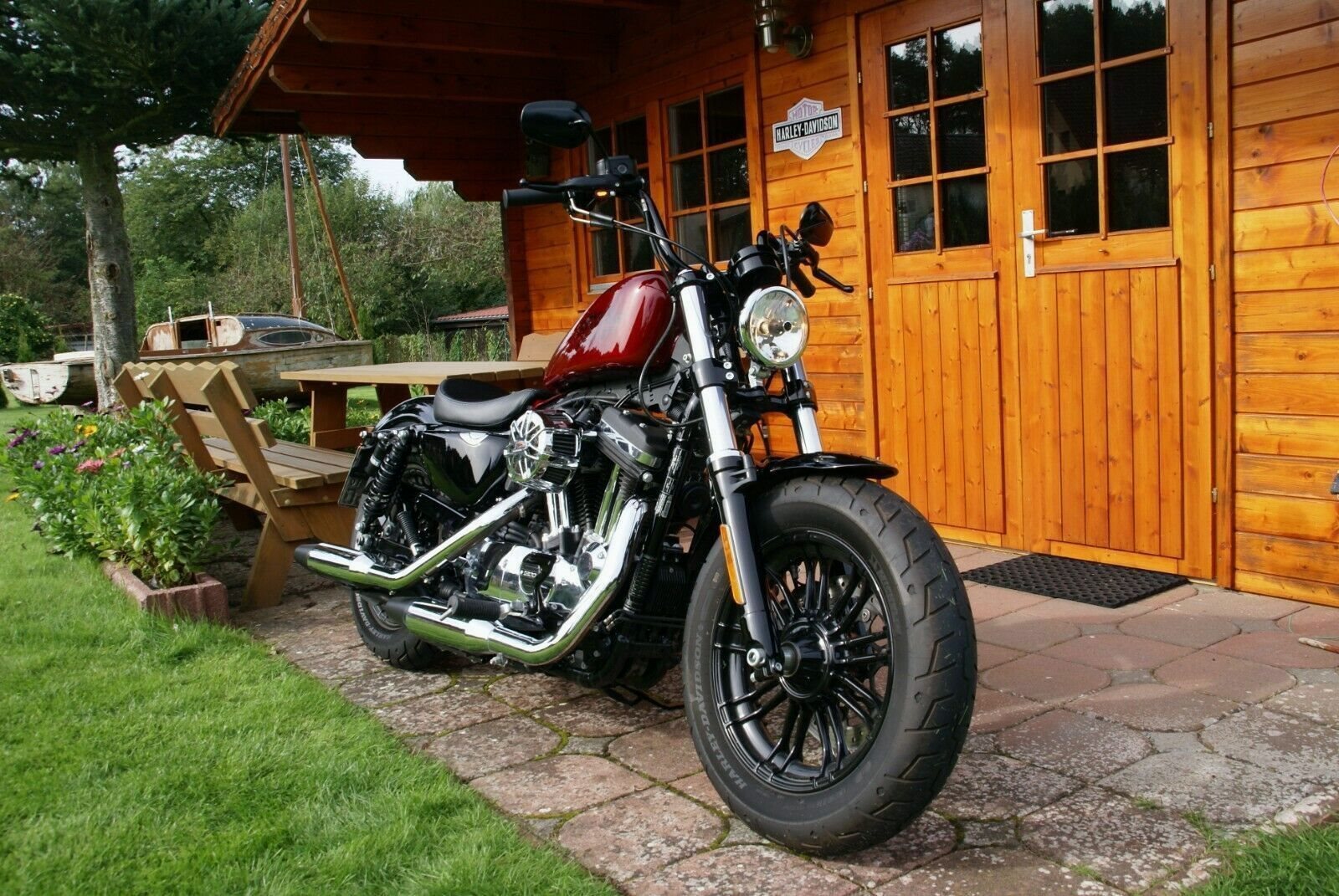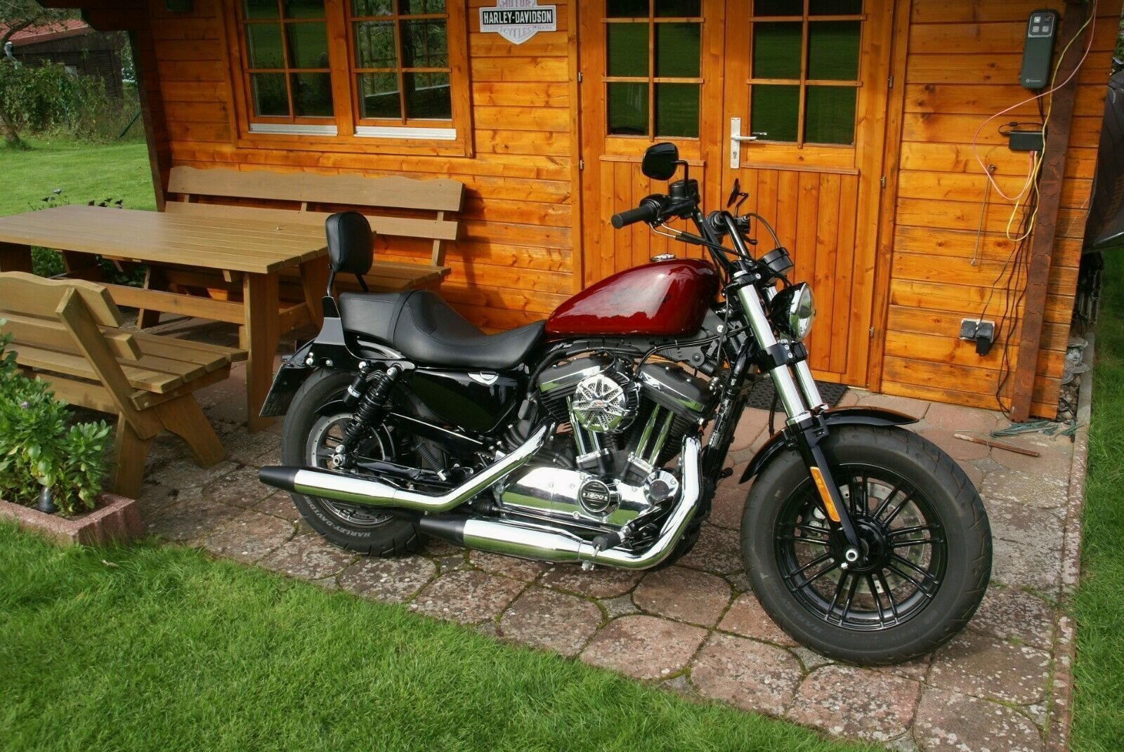 Sie wurde liebevoll behandelt und steht immer trocken in der Garage und wurde nur bei schönem Wetter bewegt. Regen hat sie noch keinen gesehen. Wartung und Inspektion bei Harley Davidson. Die letzte Sportster mit dem berühmten luftgekühlten Evolution Motor.