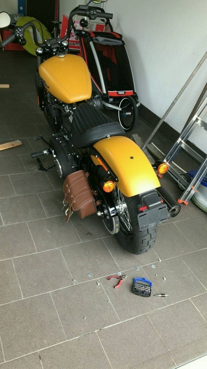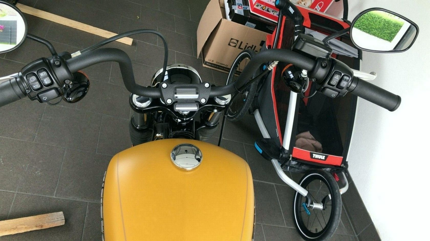 Zusätzlich ist noch ein Sozisitz, Satteltaschen und von Harley Original verpackt das Ladekabel für die Batterie