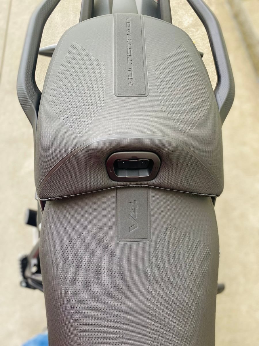 Die automatische Absenkvorrichtung senkt die Multistrada V4 S automatisch und schnell ab, wenn die Geschwindigkeit unter 10 km/h sinkt, und kehrt bei Geschwindigkeiten über 50 km/h in die Fahrposition zurück, so dass der Fahrer jedes Mal, wenn er die Füße absetzen muss, mehr Sicherheit hat.