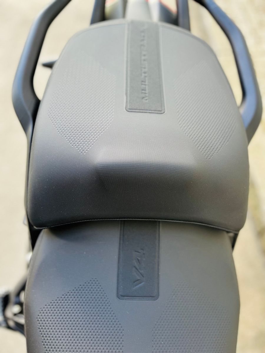 Die Aluminium-Seitenkoffer und die Topcase-Halterung wurden nach hinten verlagert, so dass der Sozius mehr Platz und eine größere Bewegungsfreiheit hat.
