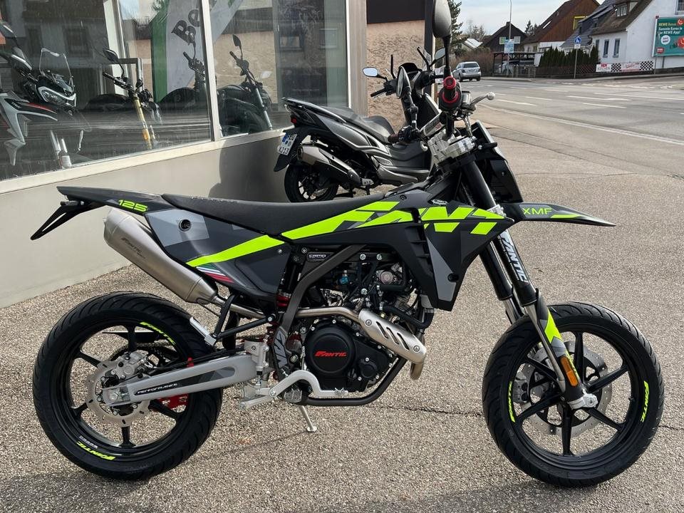Neufahrzeug Modell 2025 mit ABS vom Vertragshändler mit Werksgarantie, die bei allen Vertragshändlern gültig ist.____________________________________________Wir liefern Ihr Motorrad für 79 € bis 50km & 149 € bis 100km (einfache Fahrtstrecke).Über 100 km innerhalb Deutschlandes, ausgenommen der Inseln, für 245€.______________________________________________XMF 125 Competition: 5.490,- €XMF 125 Performance: 4.990,- €zzgl. 150€ NebenkostenSonderfinanzierung auch ohne Anzahlung möglich.Für mehr Informationen oder einer individuellen Beratung kommen Sie gerne persönlich bei uns vorbei oder besuchen Sie uns im Internet.Scherzer GmbHCrailsheimer Str. 1491555 FeuchtwangenTel: 09852/67660MOTORHomologation: Euro 5Motor: 1 Zylinder 4-Takt, flüssigkeitsgekühlt Leistung :11 kW (15 PS) bei 9.750 U/minDrehmoment: 11,8 Nm bei 6.750 U/minHubraum: 124,66 ccBohrung: 52,0 mmHub:58,7 mmGemischsteuerung: eine obenliegende Nockenwelle, 4 Ventile, variable SteuerzeitenEinspritzung: Drosselklappe ø30 mmStarter: ElektrischGetriebe: 6-GangKupplung: Mehrscheibenölbad, Anti-HoppingAuspuff: ARROW KomplettanlageVerbrauch: 1,8 l/100 kmCO2 Emission: 43 g/kmFAHRWERKRahmen: Perimeter CrMo-StahlrohrRahmenheck: Stahlrohr, demontierbarSchwinge: Stahlrohr, progressiv angelenktBereifung: 100/80-17, 130/70-17Felgen: Aluminium, schwarz eloxiertBremsen: "Wave"-Scheibe ø320 mm - "Wave" - Scheibe ø220 mm, CBSGabelbrücken: Aluminium geschmiedetFederung vorne: FANTIC ø41 mm USD GabelFederung hinten: FANTIC FRS 125 Federbein Federvorspannung einstellbarLenker: ø22 mm StahlrohrABMESSUNGEN / DIMENSIONENLänge: 2110 mmSitzhöhe: 880 mmRadstand: 1435 mmGewicht fahrbereit: 119 kgTankinhalt: 7,5 lIrrtümer, Änderungen und Zwischenverkauf vorbehalten!