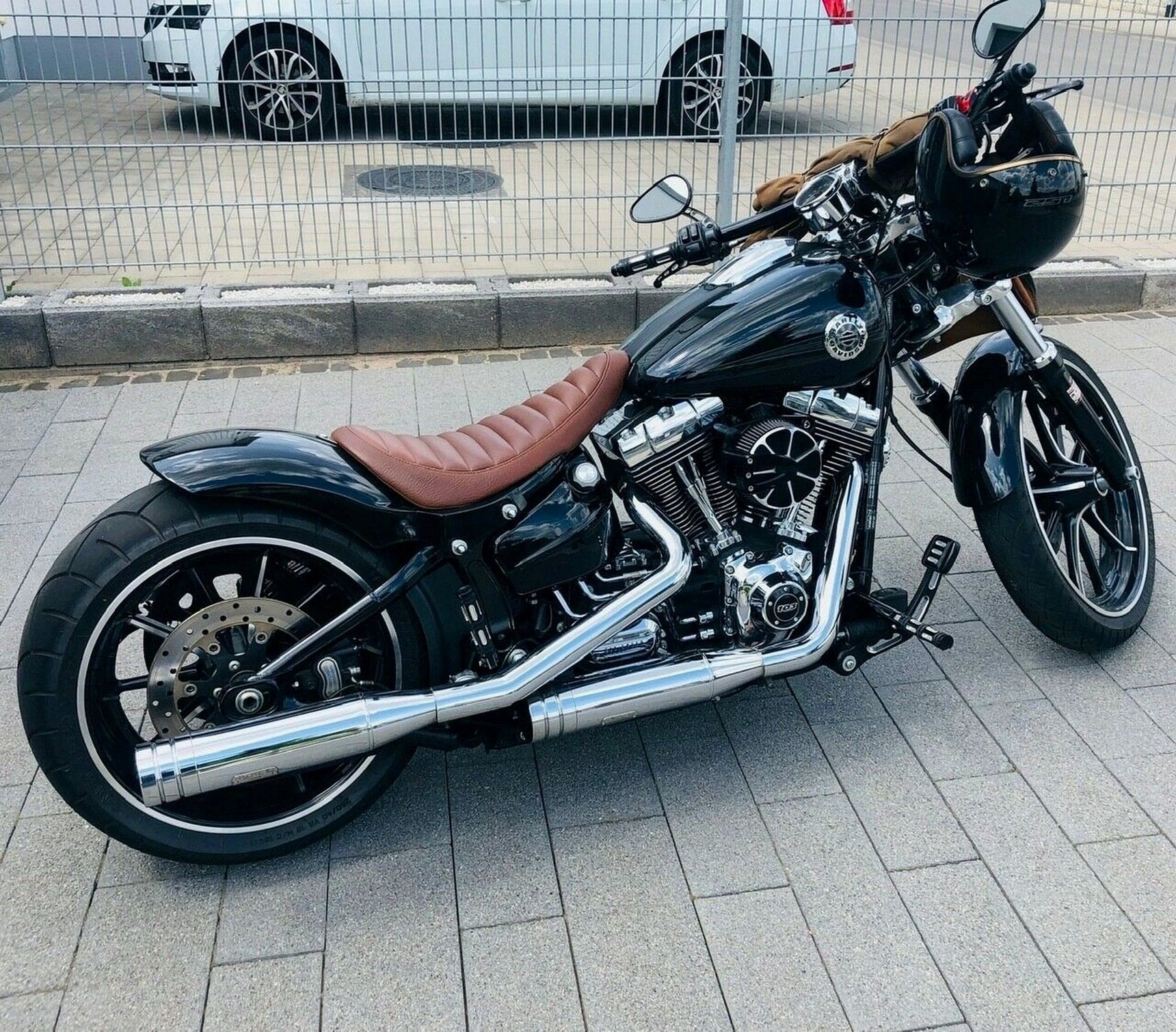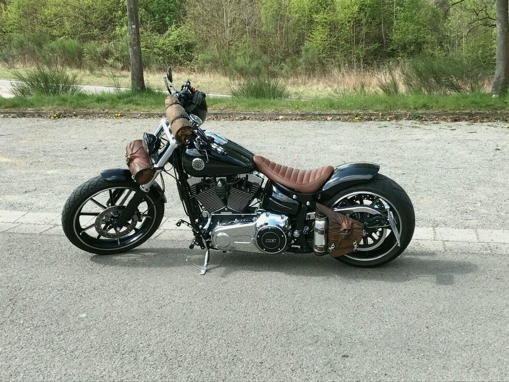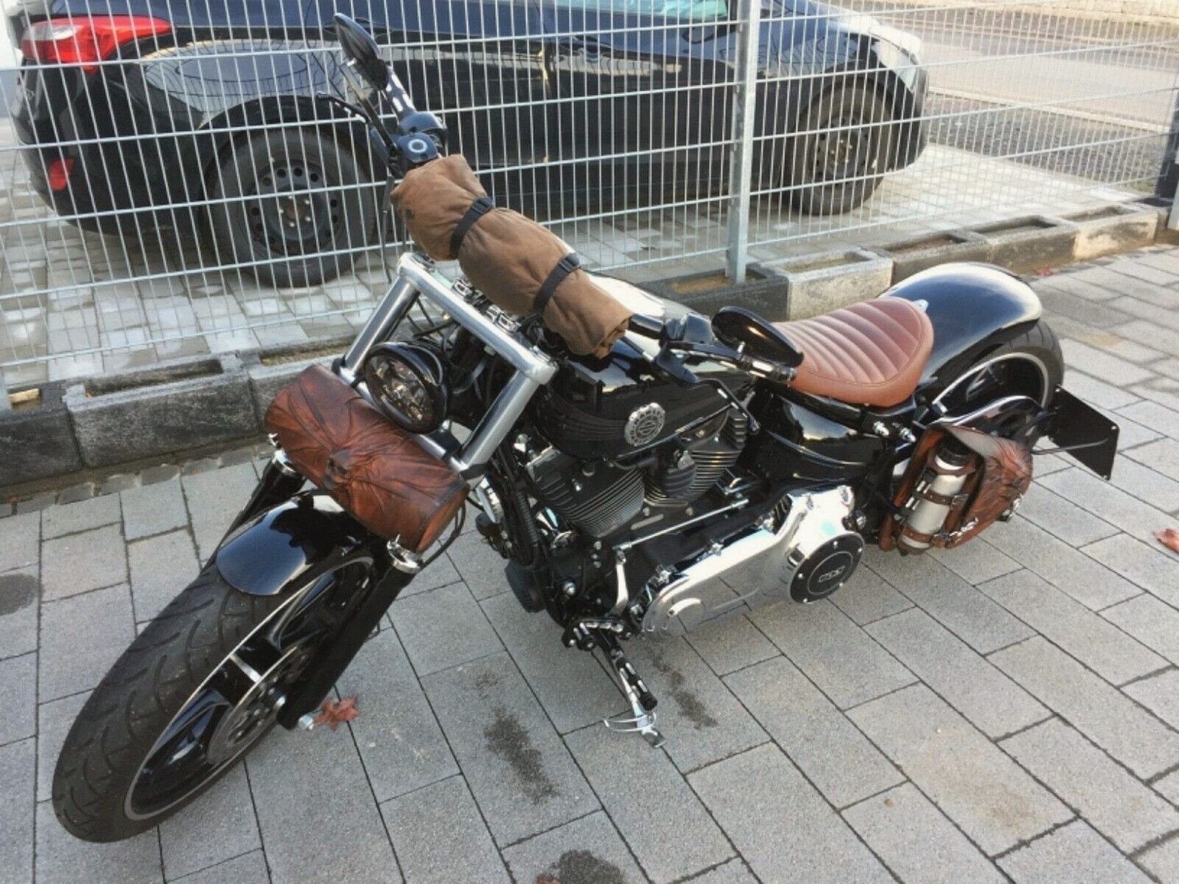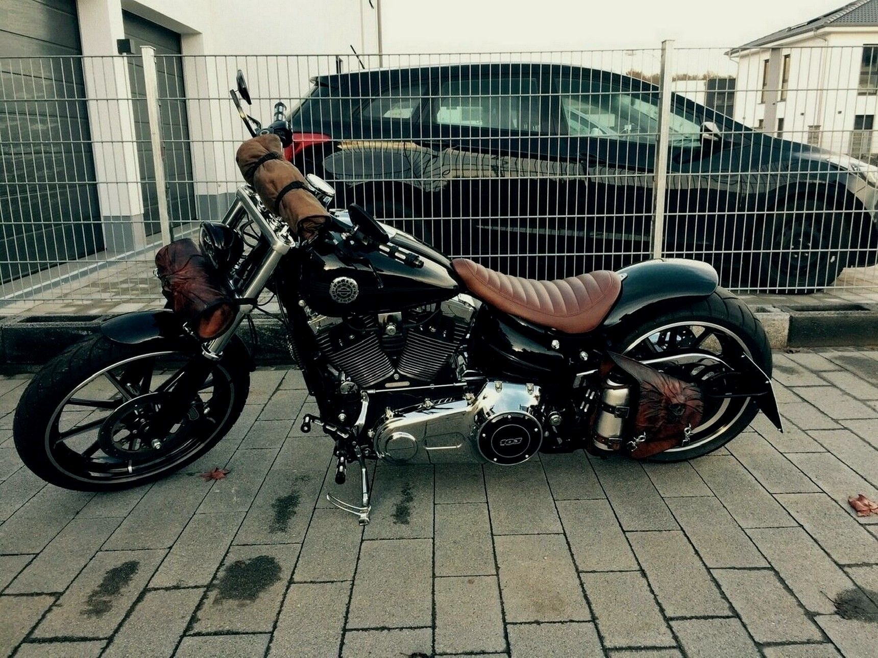 Super Schöne Harley Breakout, Stage 2 - 90 PS / 147 Nm Drehmoment, Heckumbau Thunderbike, 260 Reifen hinten, 120 Reifen vorne, Tieferlegung, Ricks Luftfilter Good Guys, Kellermann Blinker, Daymaker, Kit EFI Super Tuner Screamin Eagle, Jekyll & Hyde Big Shot Auspuff, Screamin Eagle Griffe/Fussrasten, seitlicher Kennzeichenhalter, tolle angefertigte Ledertaschen.