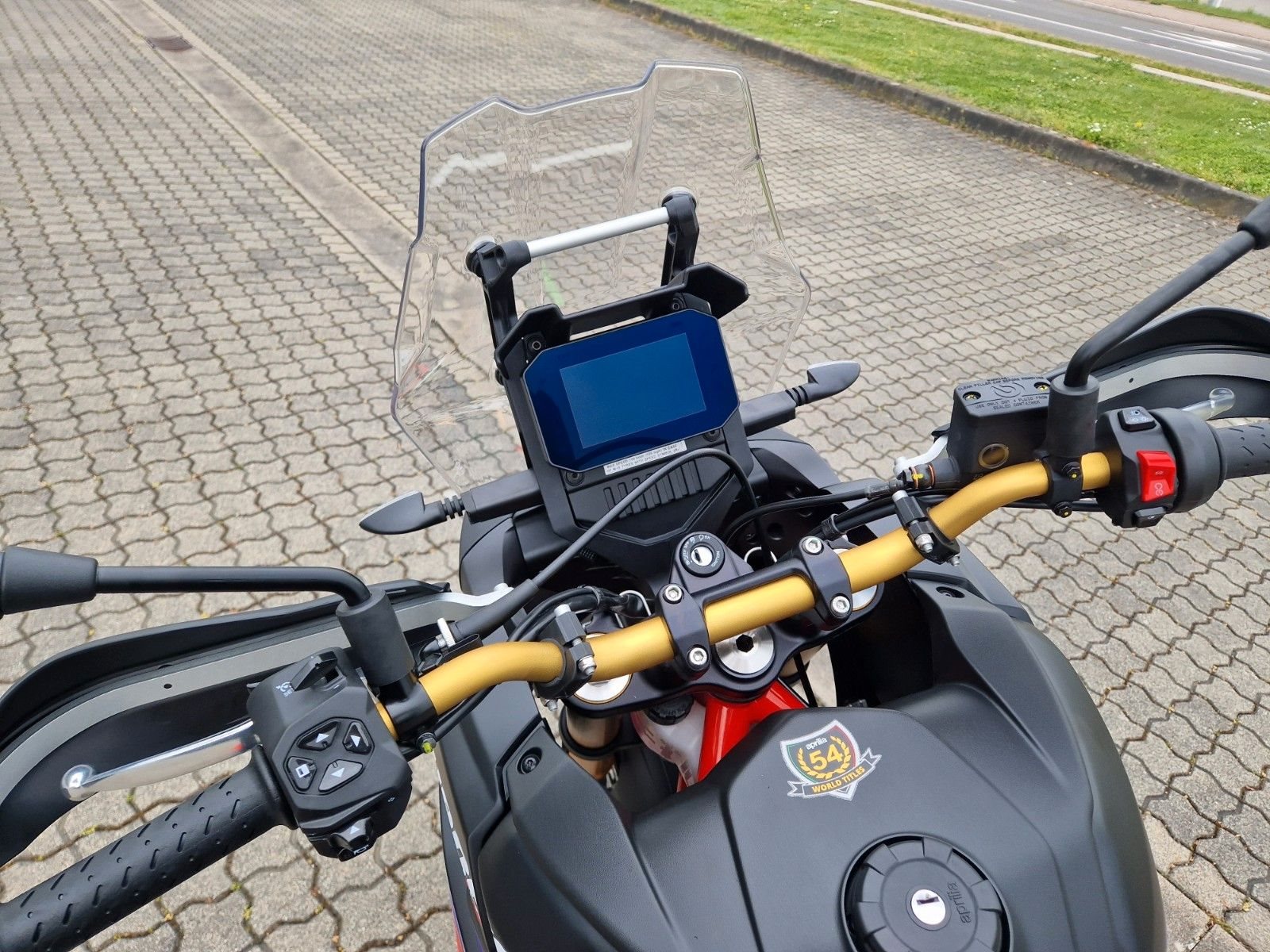 Der hochmoderne 2-Zylinder-Paralellel-Twin leistet 58,8 kW / 80 PS und 70 Nm Drehmoment . Bei einem Leergewicht von nur 204 kg fahrfertig bietet die Tuareg satte 210 kg Zuladung . 18 Liter Tankvolumen sorgen für eine Reichweite von circa 450 Kilometern . Voll einstellbare Federelemente garantieren besten Fahrkomfort und Sicherheit. Ride-by-Wire, vier Fahrmodi und die elektronischen Fahrassistenzsysteme des aPRC - Aprilia Performance Ride Control - gehören ebenfalls zur Serienausstattung.