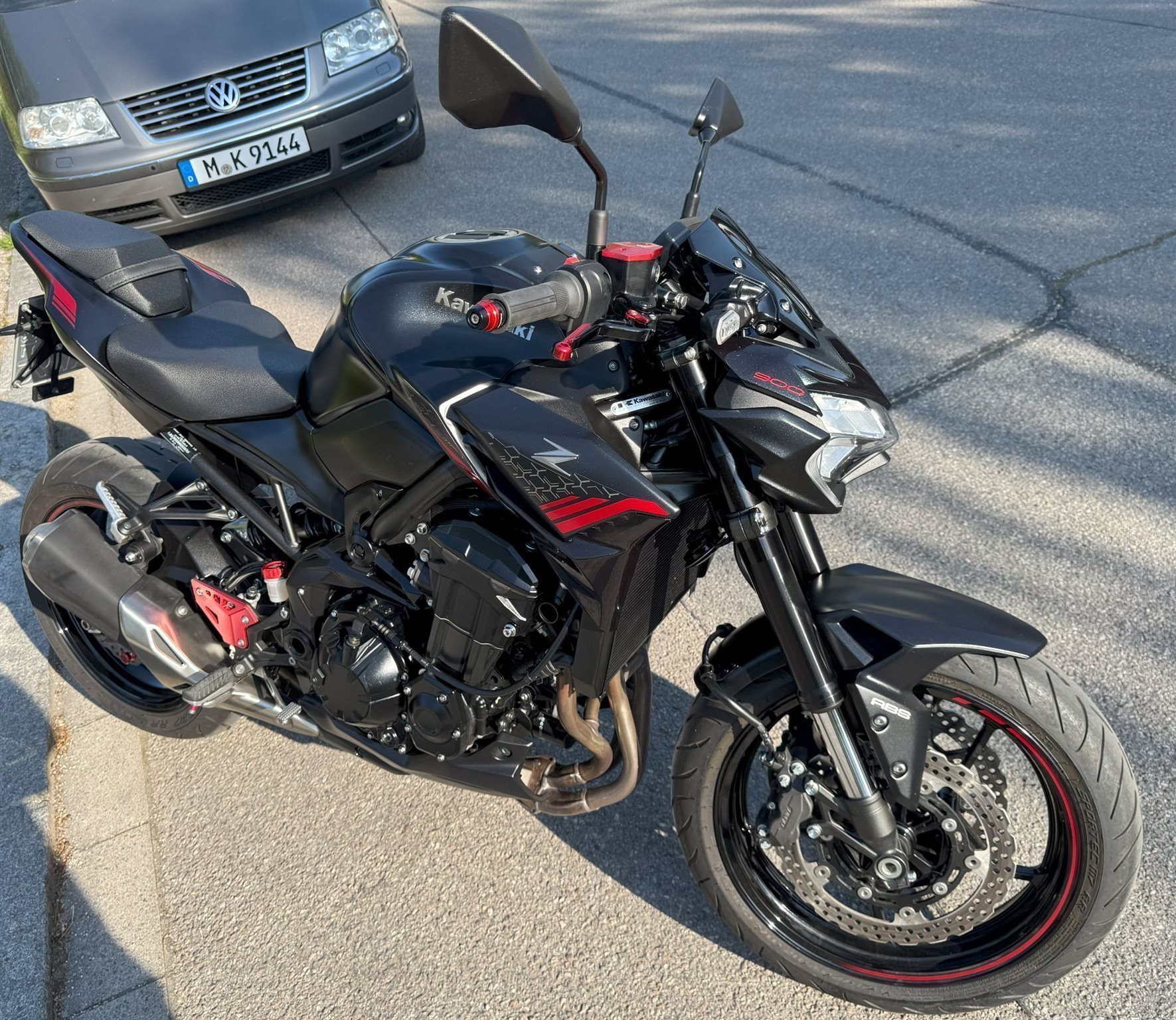 A2 Version , wunderschöne anthrazit graue Kawa ZR900H Baujahr 11/2019 Modelljahr 2020, mit rot eloxierten Abdeckungen.