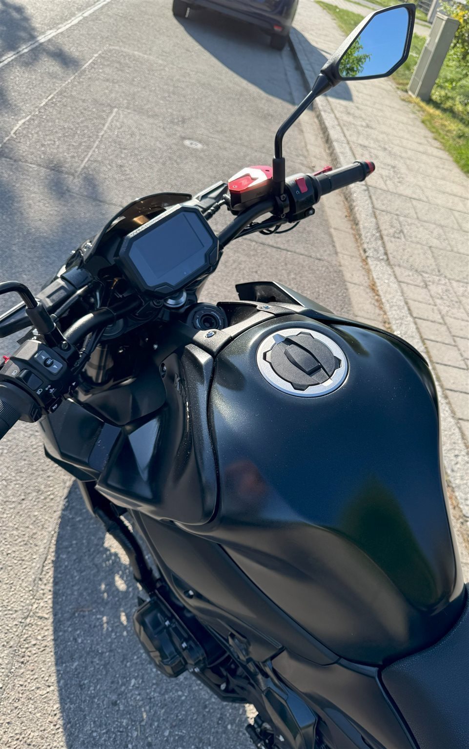Breiterer Lenker mit Griffheizung.