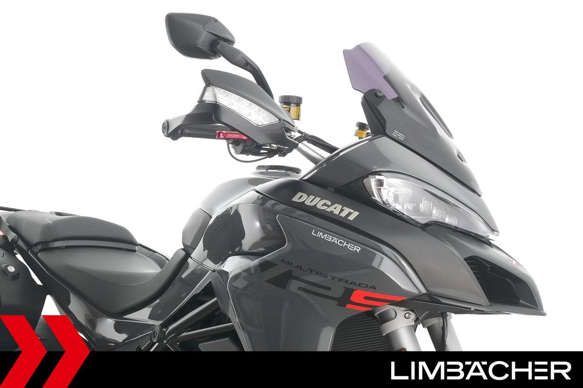 Eine Ducati Multistrada V2 S Travel aus zweiter Hand in sehr gepflegtem Zustand u.a. mit Ducati-Koffersystem und kurzem Kennzeichenhalter.