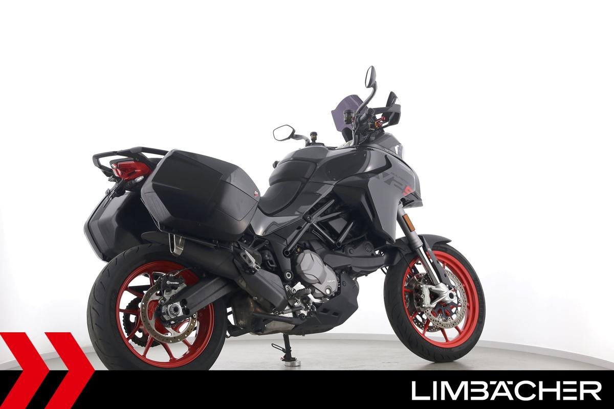 Eine Ducati Multistrada V2 S Travel aus zweiter Hand in sehr gepflegtem Zustand u.a. mit Ducati-Koffersystem und kurzem Kennzeichenhalter.
