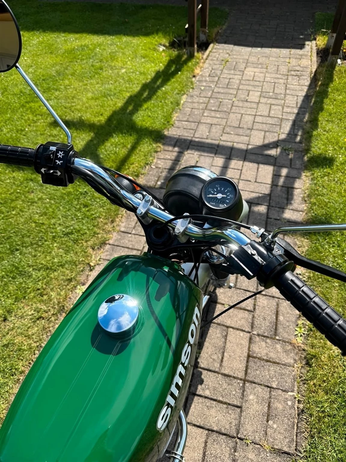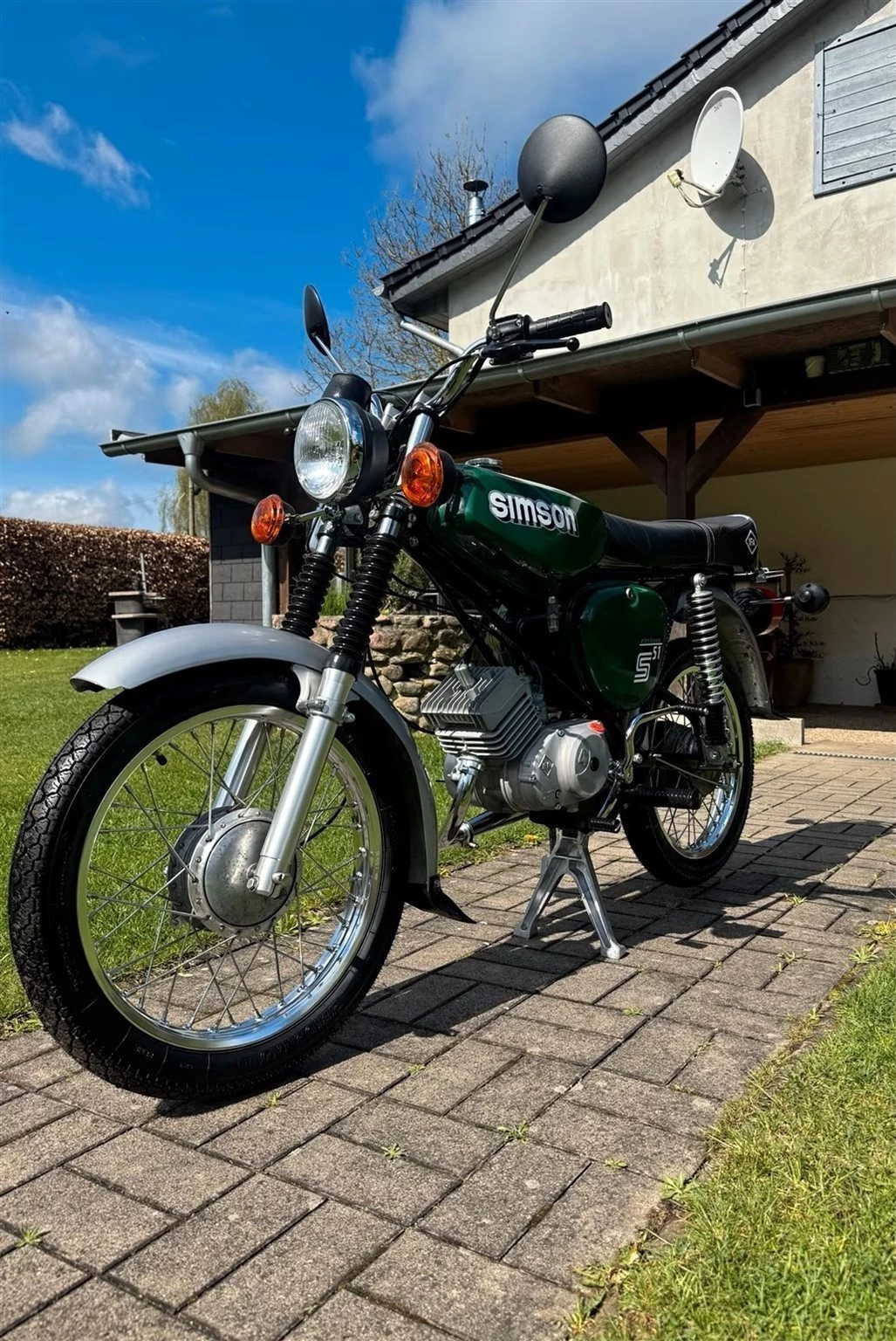 Aus Platzgründen biete ich hier meine vollständig restaurierte Simson S51 in Billardgrün an. Es handelt sich um eine original- DDR Simson mit Papieren und deutschem Typenschild, sie hat eine 60 km/ h Zulassung.