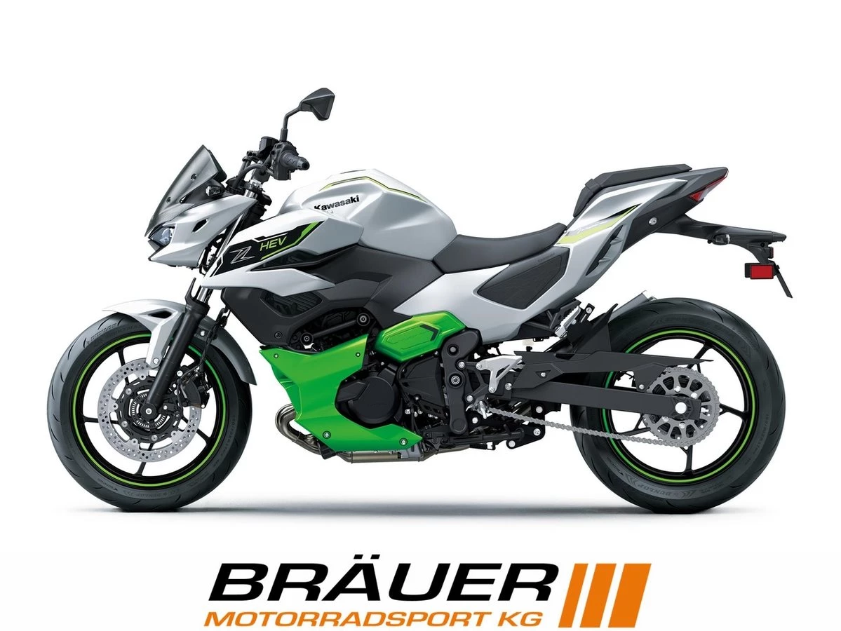 Das weltweit erste* Voll-Hybrid-Motorrad von Kawasaki. Die einzigartige Kraftentfaltung eines Verbrennungsmotors mit 451 cm und einem kompakten E-Antrieb schafft ein besonderes Fahrerlebnis beim weltweit ersten Voll-Hybrid-Motorrad: Ein Mittelklasse-Bike mit dem Beschleunigungsvermögen eines 1.000-cm-Sportmotorrads aus dem Stand (mit E-Boost) - der Verbrauch entspricht aber der 250-Kubikzentimeter-Klasse. Wie das Schwestermodell Ninja 7 Hybrid verfügt auch die Z7 Hybrid über drei unterschiedliche Fahrmodi und eine Vielzahl innovativer Details. Eine neue Ära im Motorradbau hat begonnen.