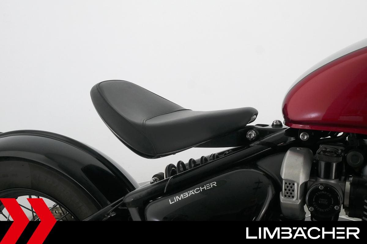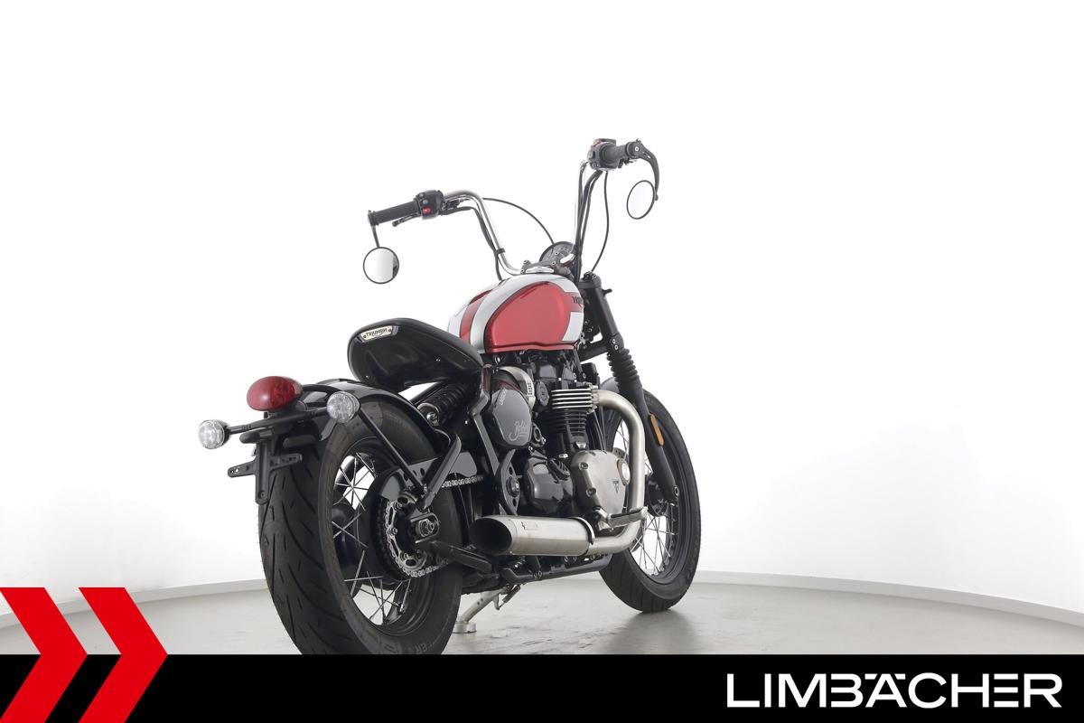 Eine scheckheftgepflegte Triumph Bonneville Bobber in sehr gepflegtem Zustand u.a. mit Vance&Hines-Endschalldämpfer sowie Ape-Hanger-Lenkerumbau.