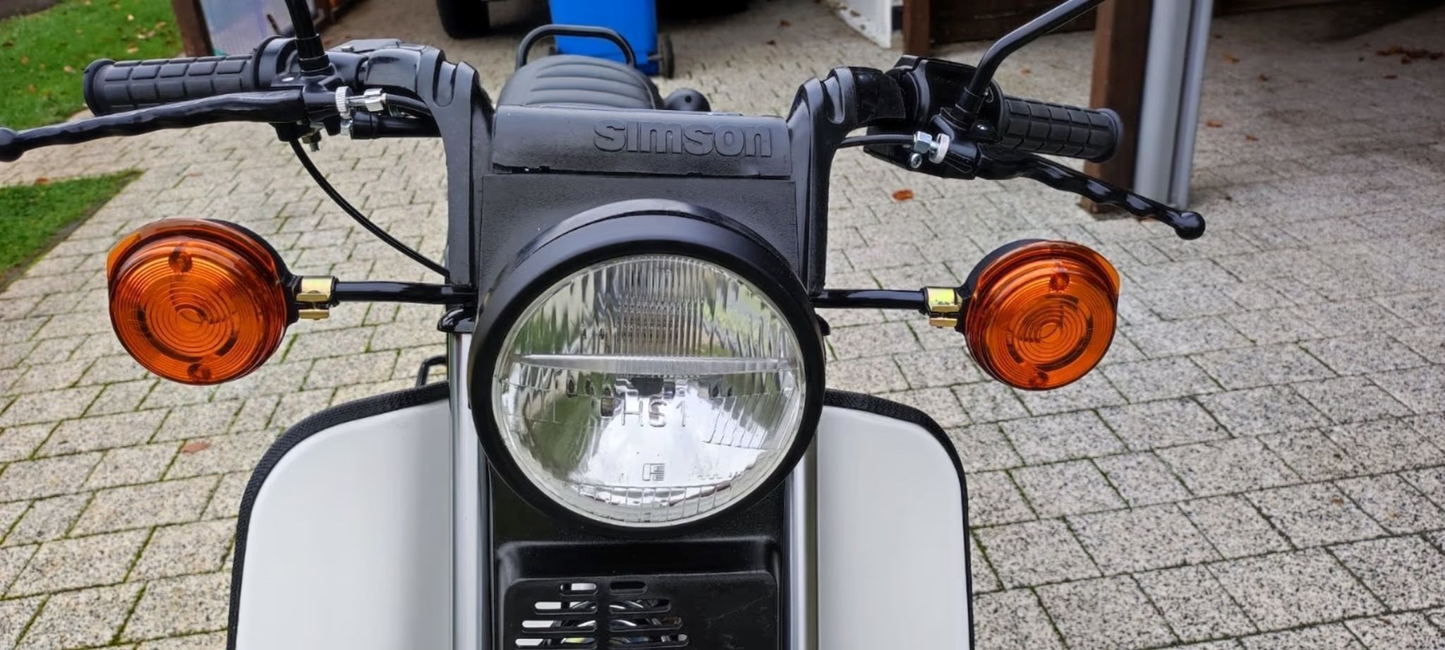 Die komplette Elektrik, inklusive Kabelbaum, Halogenscheinwerfer, Blink- und Rücklicht, Batterie, sowie vorderem und hinterem Bremslichtschalter, ist neu.