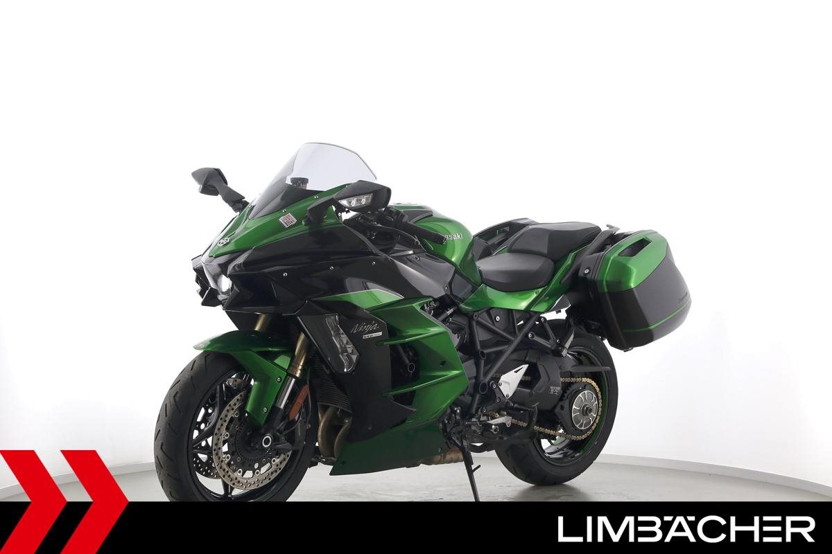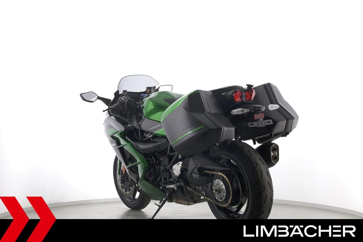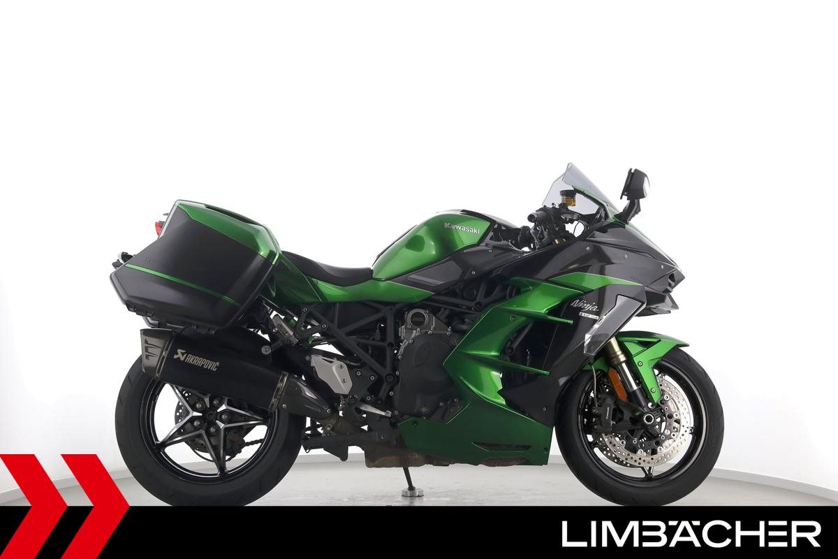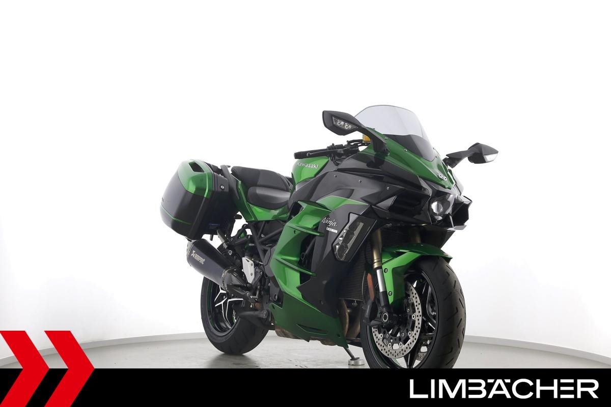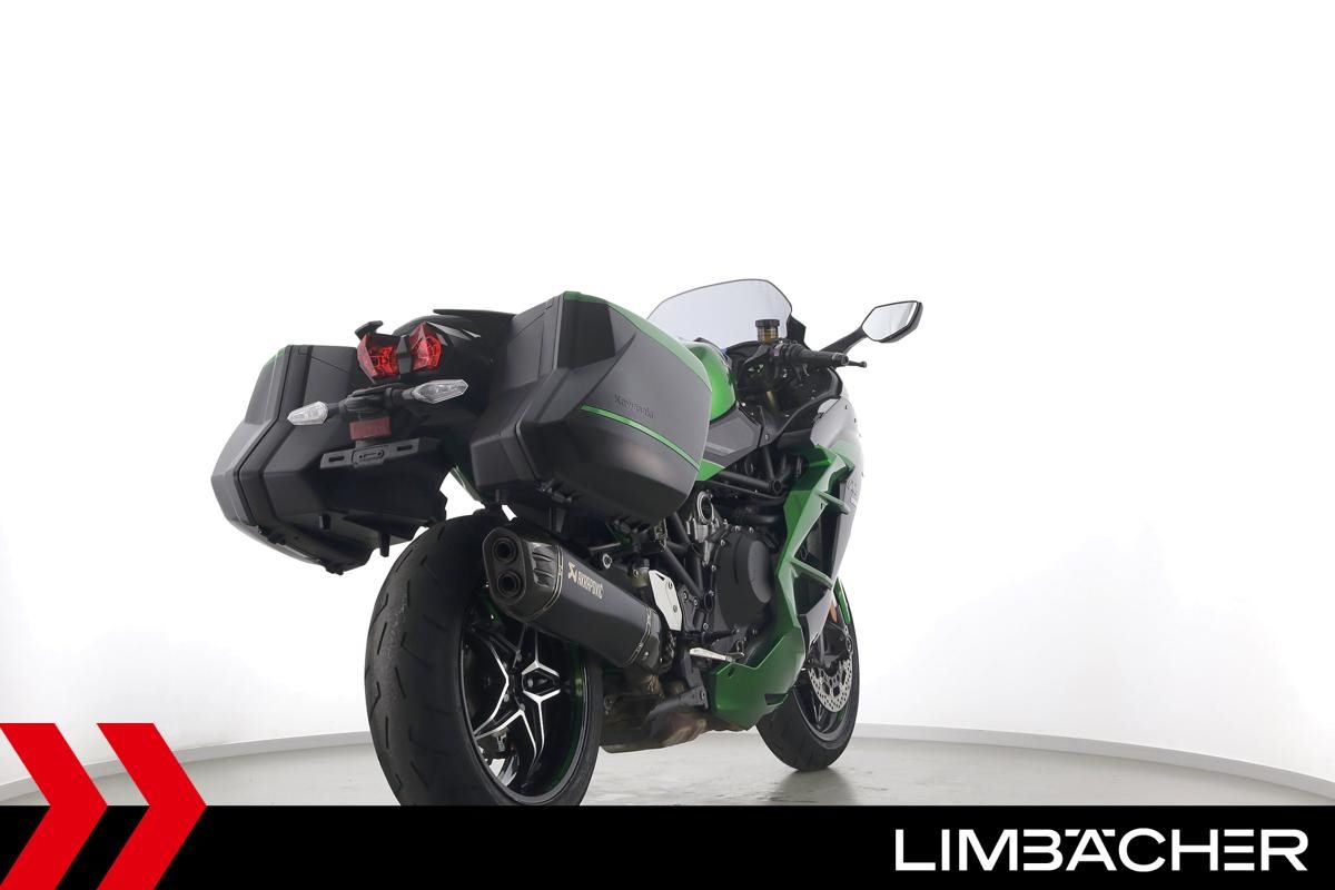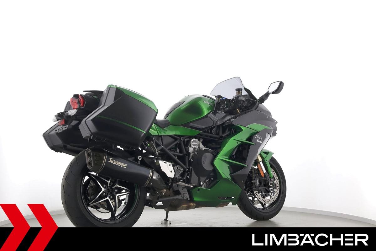 Eine Kawasaki Ninja H2 SX SE in gepflegtem Zustand u.a. mit Akrapovic-Endschalldämpfer sowie Kawasaki-Koffersystem gleichschliessend.