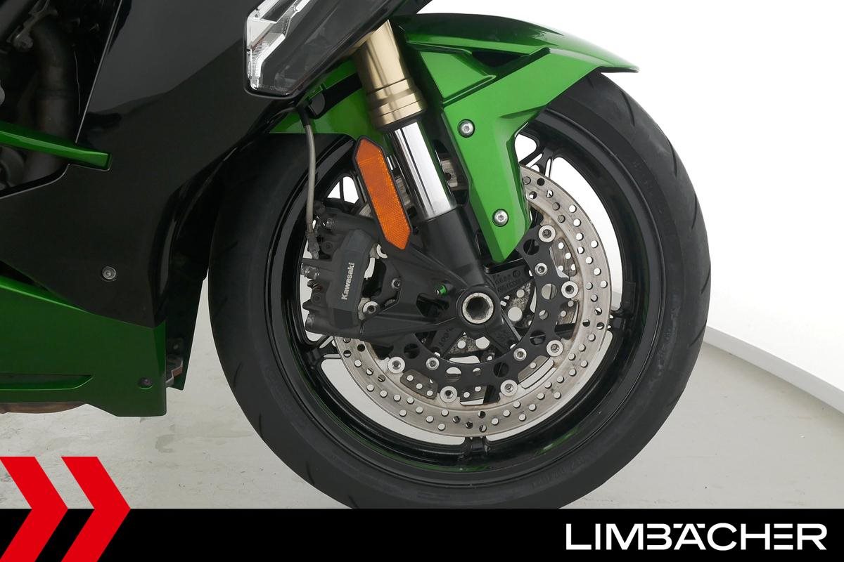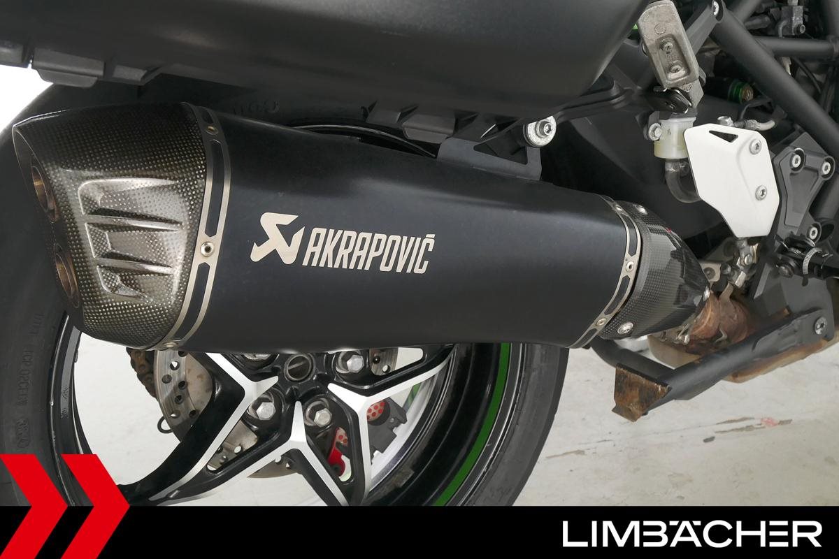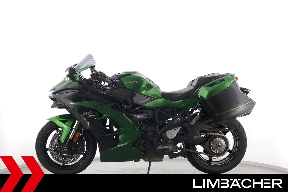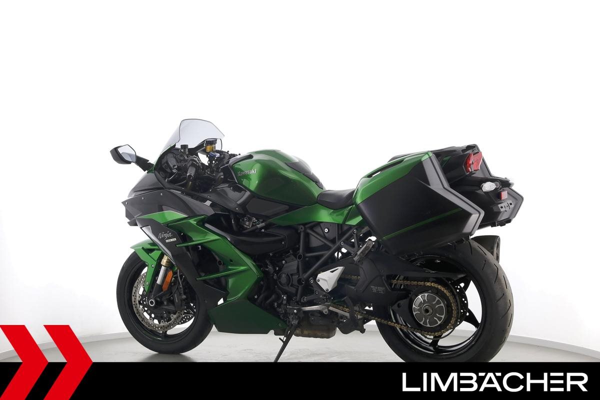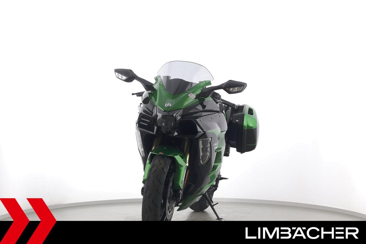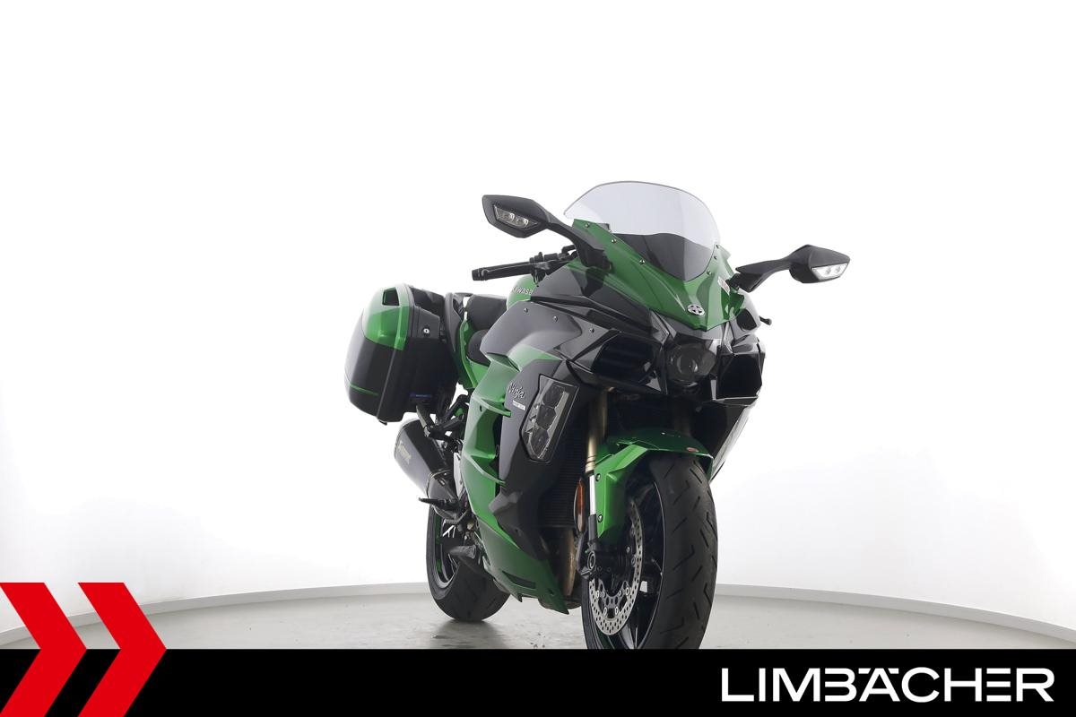 Eine Kawasaki Ninja H2 SX SE in gepflegtem Zustand u.a. mit Akrapovic-Endschalldämpfer sowie Kawasaki-Koffersystem gleichschliessend.