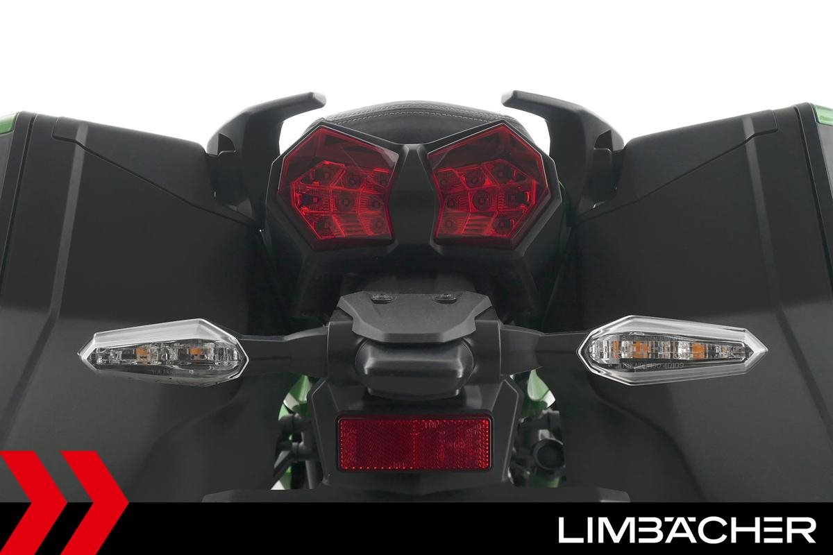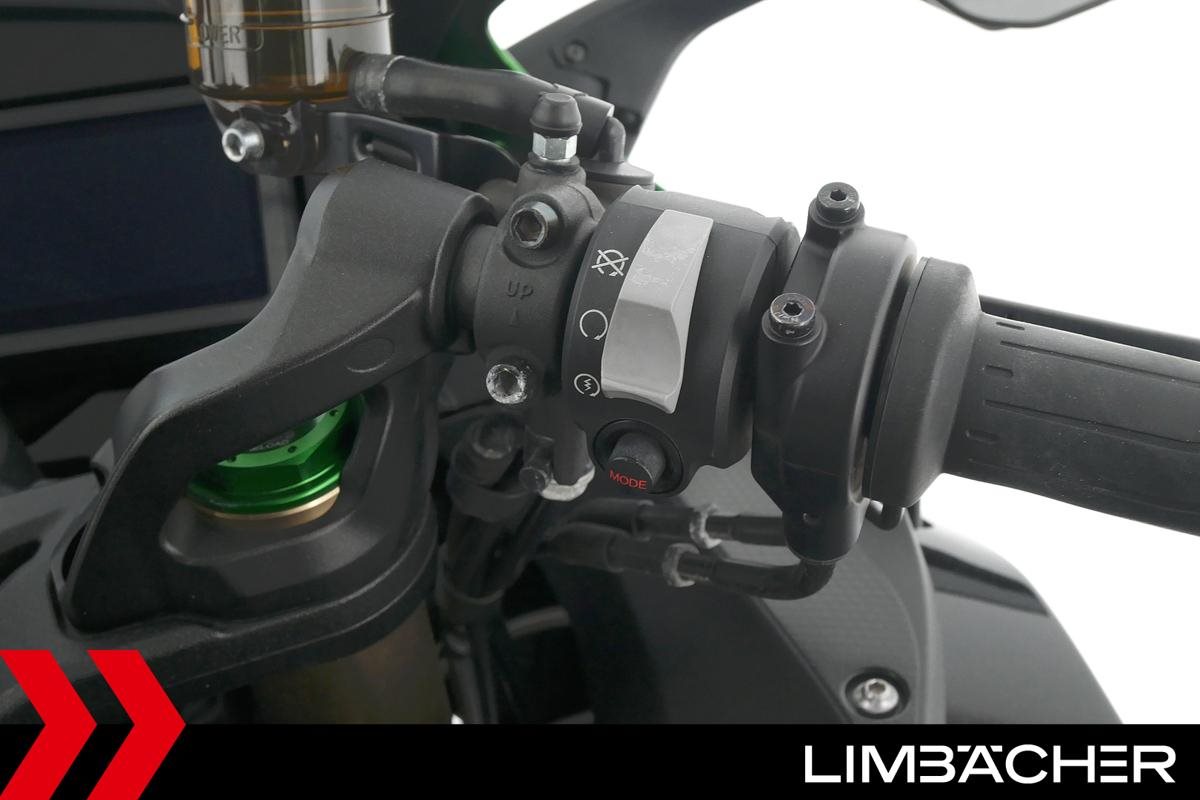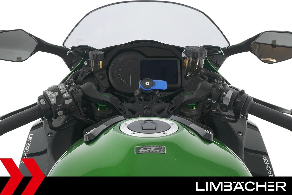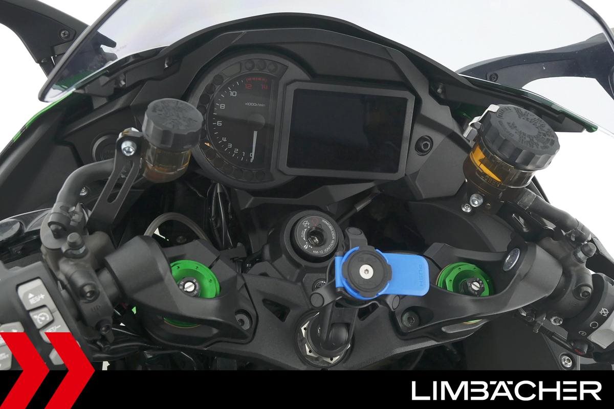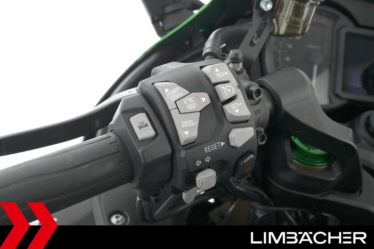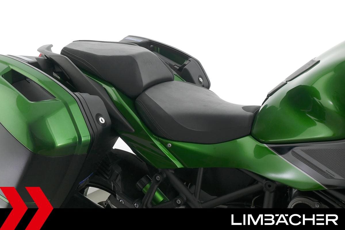 Eine Kawasaki Ninja H2 SX SE in gepflegtem Zustand u.a. mit Akrapovic-Endschalldämpfer sowie Kawasaki-Koffersystem gleichschliessend.