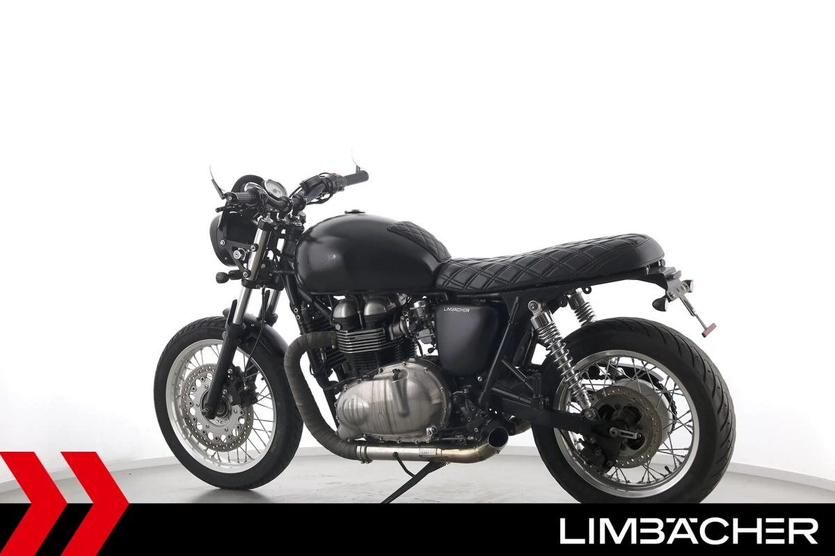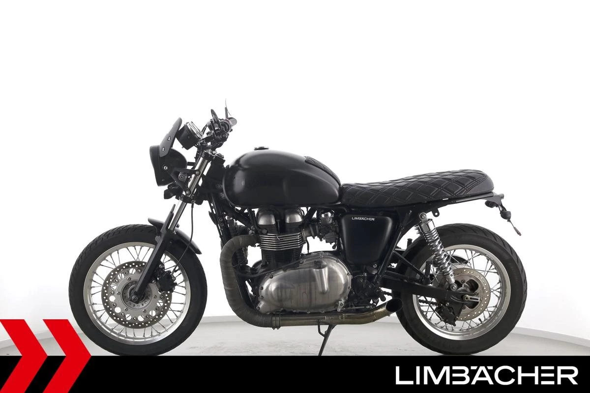 Eine scheckheftgepflegte Triumph Thruxton 900 in gepflegtem Zustand u.a. mit Mass-Auspuff sowie LSL-Fussrastenanlage.