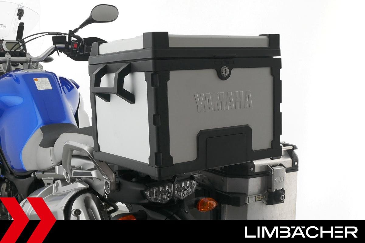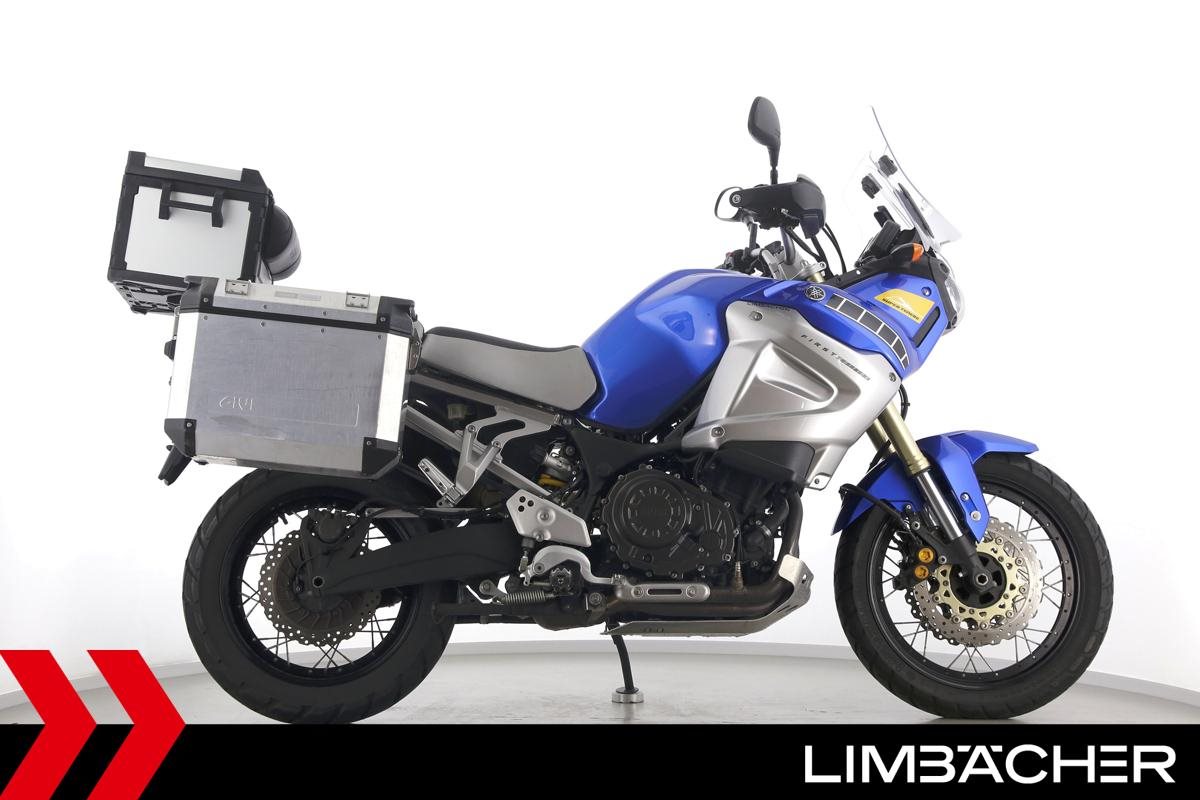 Eine Yamaha XT 1200 Z Super Ténéré in gepflegtem Zustand u.a. mit Yamaha-Alutopcase und Givi-Alukoffer rechts.