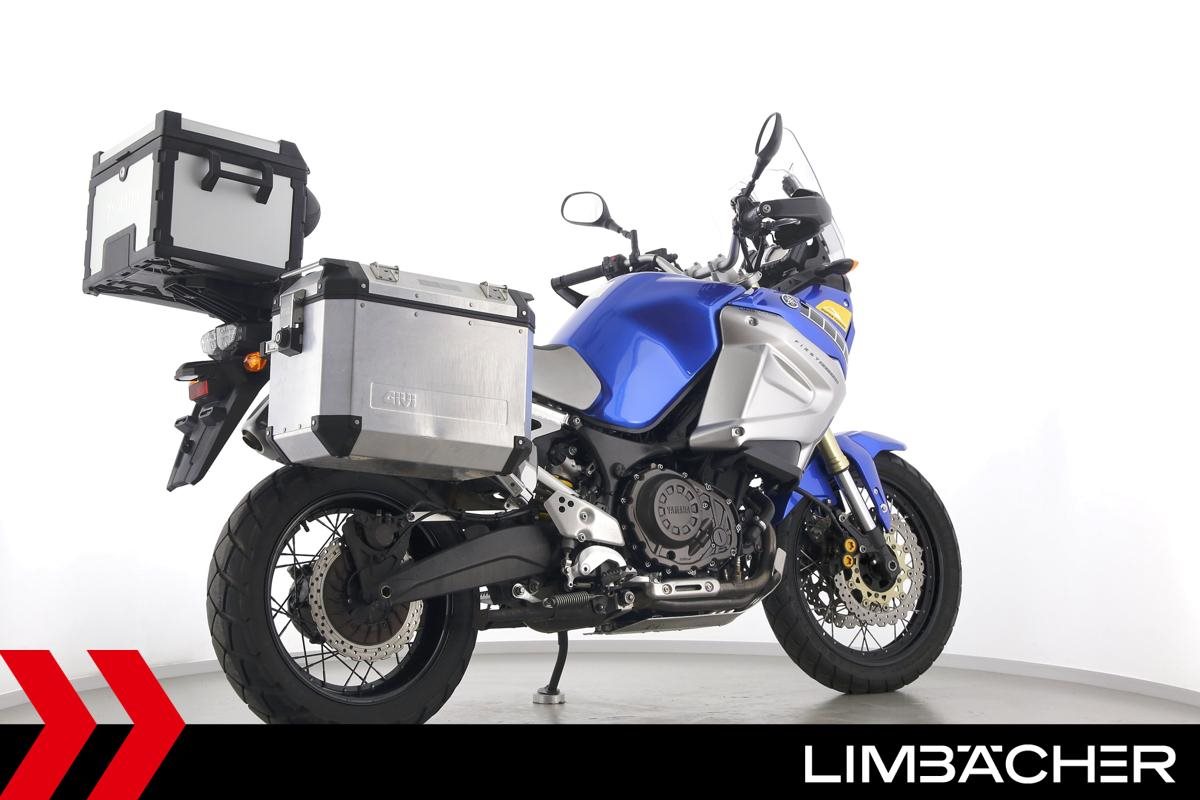 Eine Yamaha XT 1200 Z Super Ténéré in gepflegtem Zustand u.a. mit Yamaha-Alutopcase und Givi-Alukoffer rechts.