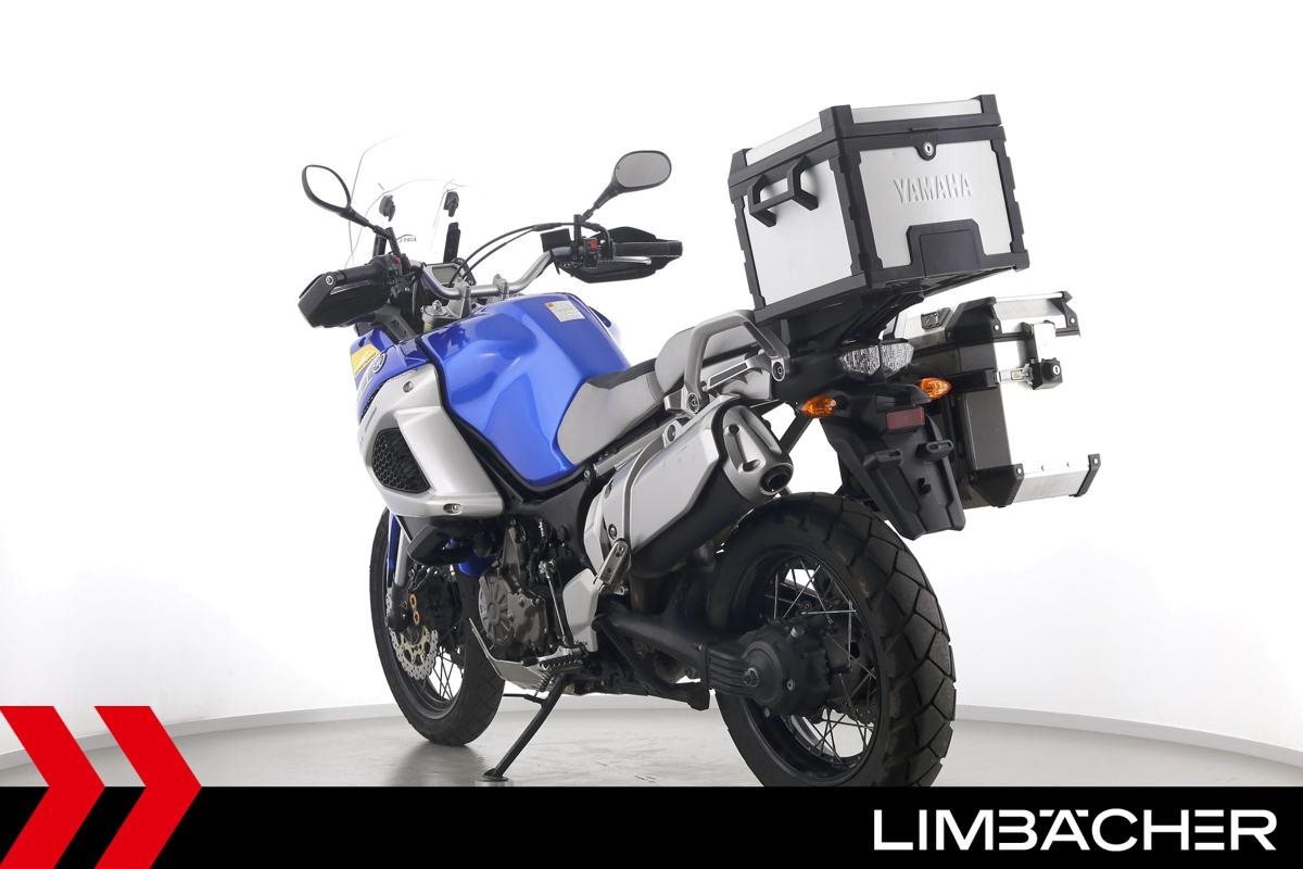 Eine Yamaha XT 1200 Z Super Ténéré in gepflegtem Zustand u.a. mit Yamaha-Alutopcase und Givi-Alukoffer rechts.