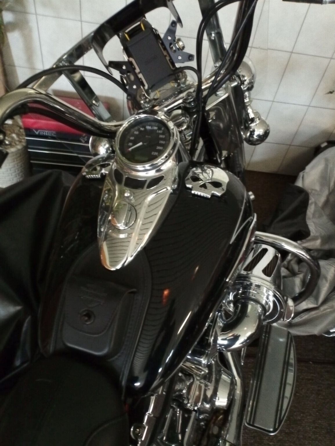 Das Motorrad wurde geflegt und Stand in einer beheizten Garage nur bei schönen Wetter gefahren an der Marschiene wurde Crom Teile angebau orignal Teile von Harly Davison.
