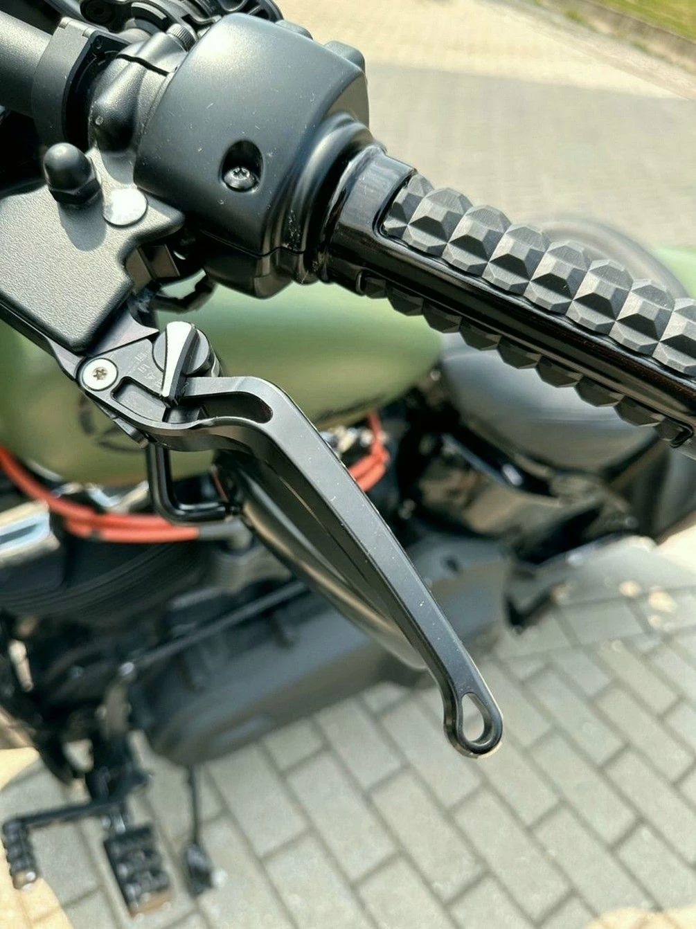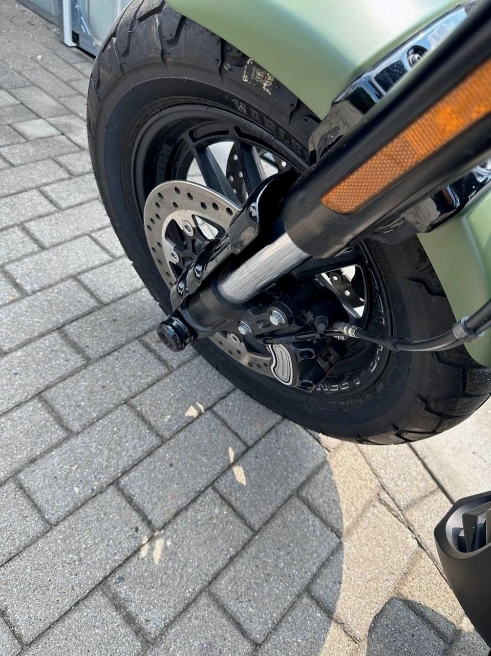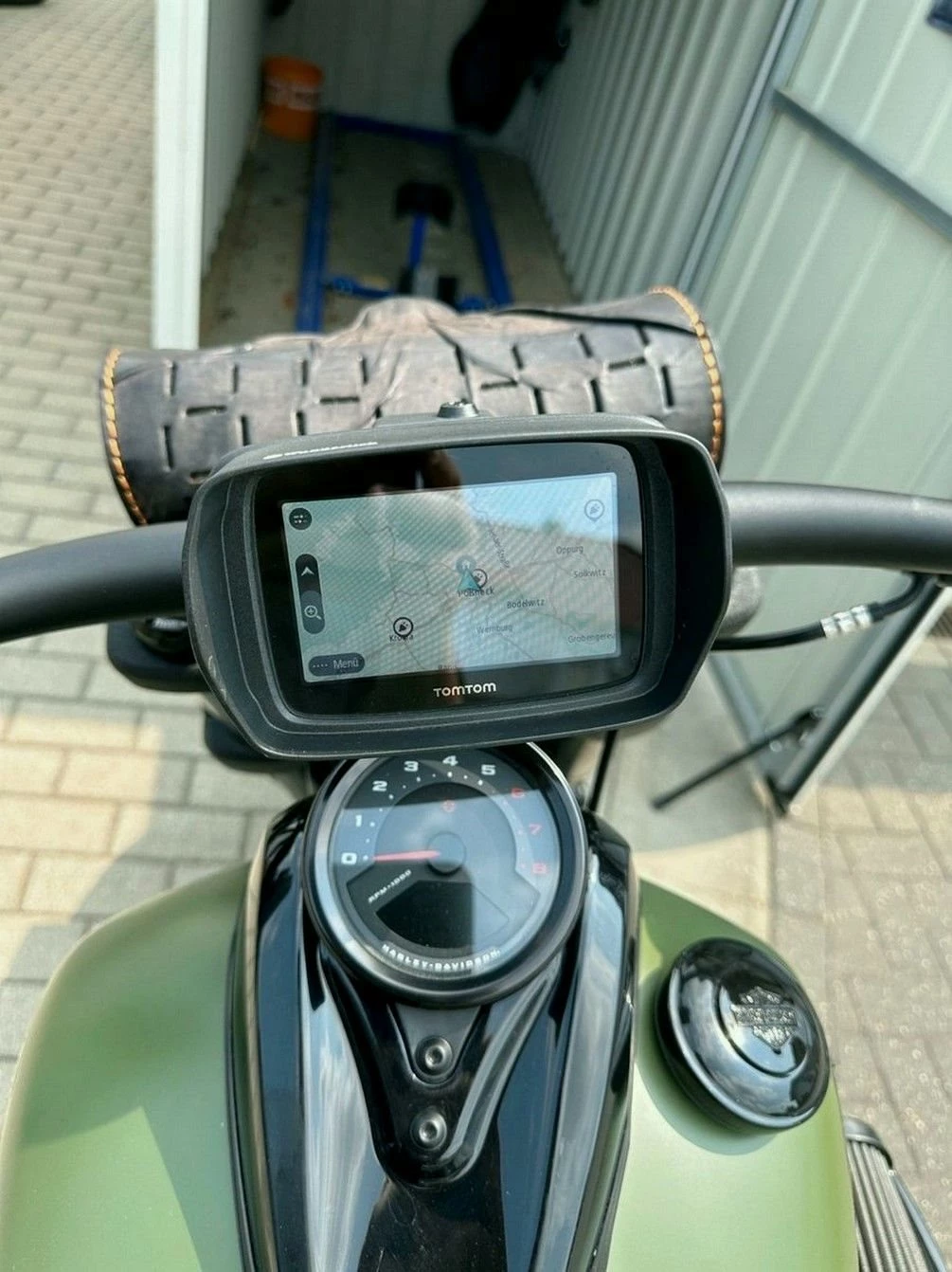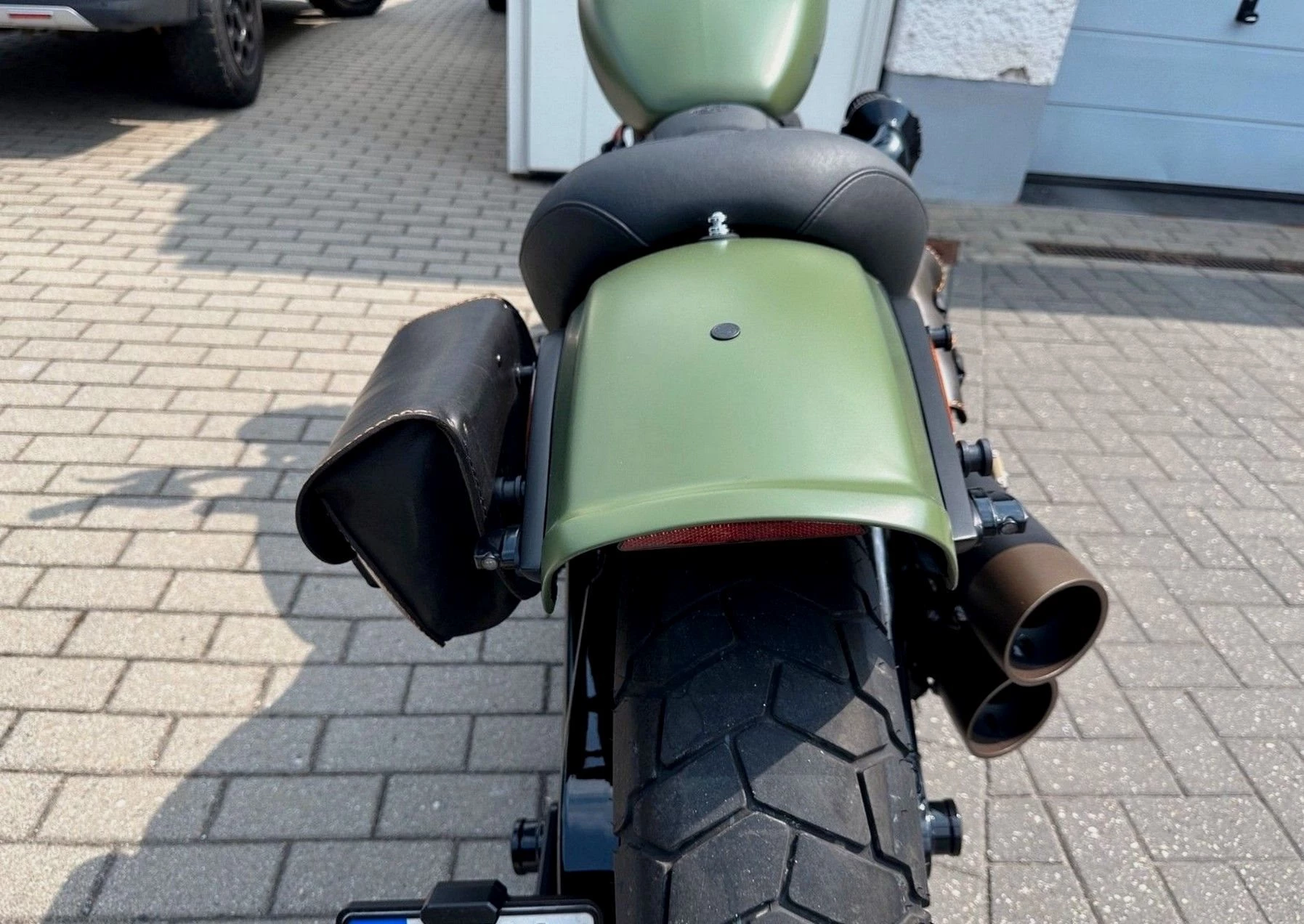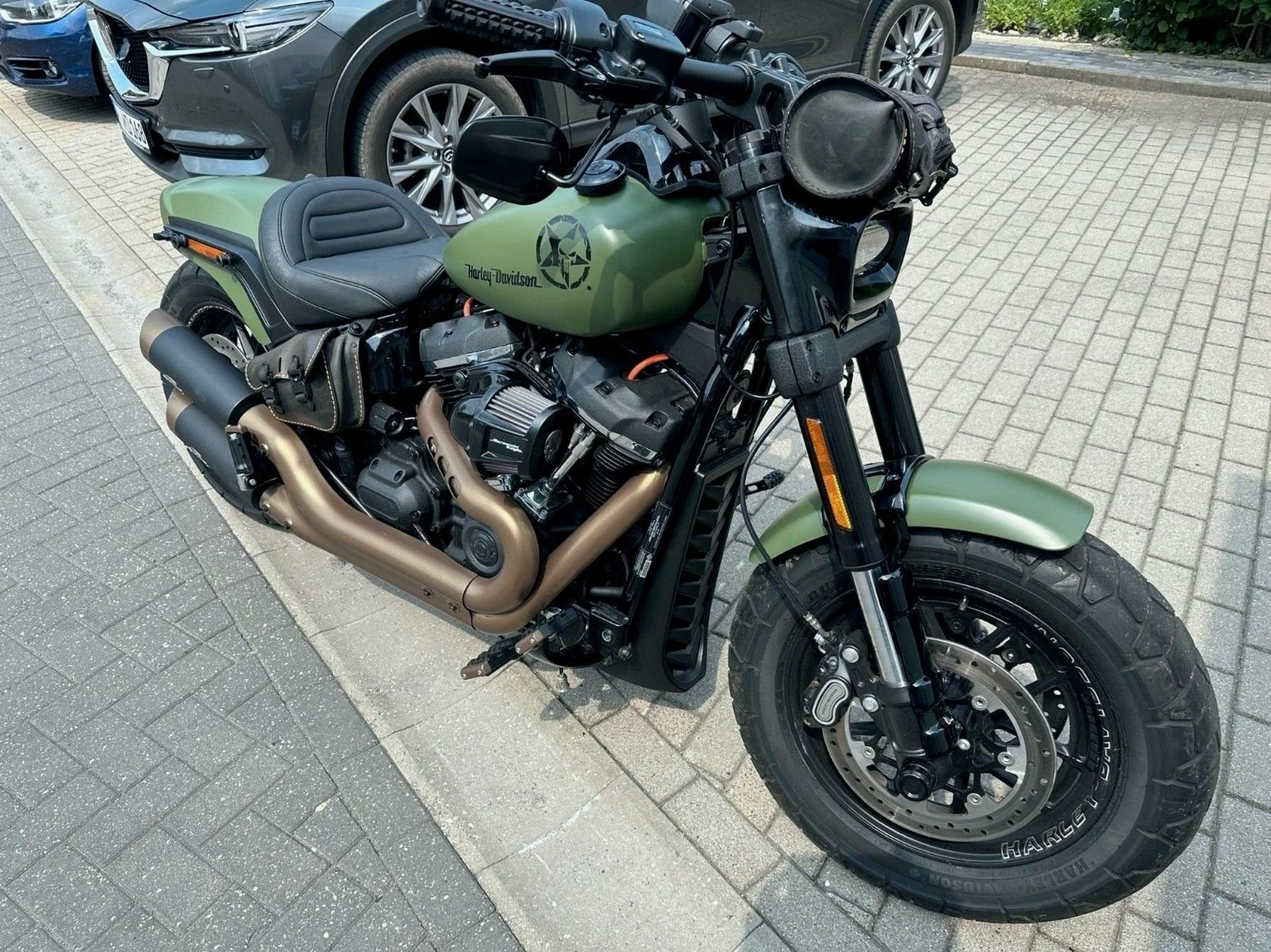 Wenig gefahrene Fat Bob, Umfall- & Unfallfrei, Matt grün lackiert, div. Um- & Anbauten: Jekill & Mr.Hyde Klappenauspuff (genialer Klang), Screamin Eagle Luftfilter von Bertl's (mit Mapping und Kombigutachten), 3 Taschen von Rarebag, Mustang Einzelsitzbank (sehr bequem), zus. Mustang Soziussitz mit 1 Schraube bei Bedarf montierbar, Sissybar mit Gepäckträger (nur einklicken - Werkzeuglos montierbar), Bugspoiler, Nano LED Blinker HeinzBikes vorn & hinten, seitl. Kennzeichenhalterung, Quadlook Motorradhalterung für Smartphone mit Schwingungsdämpfer, Tom-Tom Rider 550 mit Wunderlich Sonnenblende, Achscover vorn & hinten, weitestgehend schwarze Schraubenköpfe, schwarzes Schaltgestänge, abschließbarer schw. Tankdeckel mit HD Logo, Derby- & Timerdeckel in schwarz mit Willy-G Logo, Dominion Pedale vorn & hinten sowie Schalt- & Bremshebel, Orange Zündkabel, Kupplungs- & Bremshebel probrake Set Core Dark Black, Doppelsitzbank mit Aufpolsterung von TopSellerie grün abgesteppt inkl. Logo.