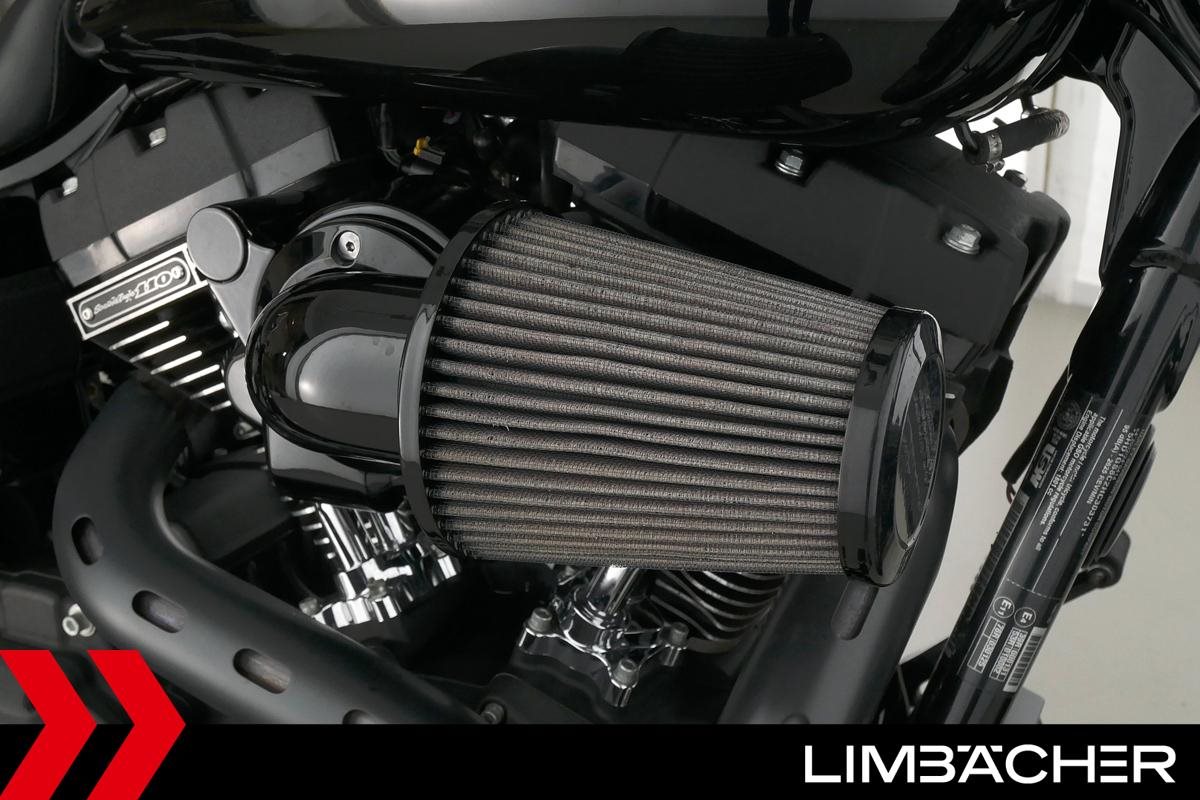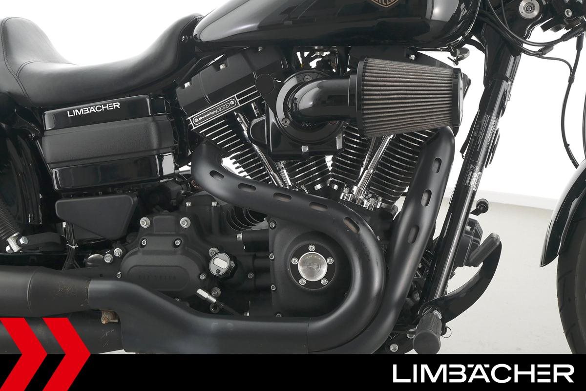Eine Harley-Davidson Dyna Low Rider S FXDLS aus zweiter Hand in gepflegtem Zustand u.a. mit Jekill&Hyde-Klappenauspuff sowie Custom-Kennzeichenhalter.