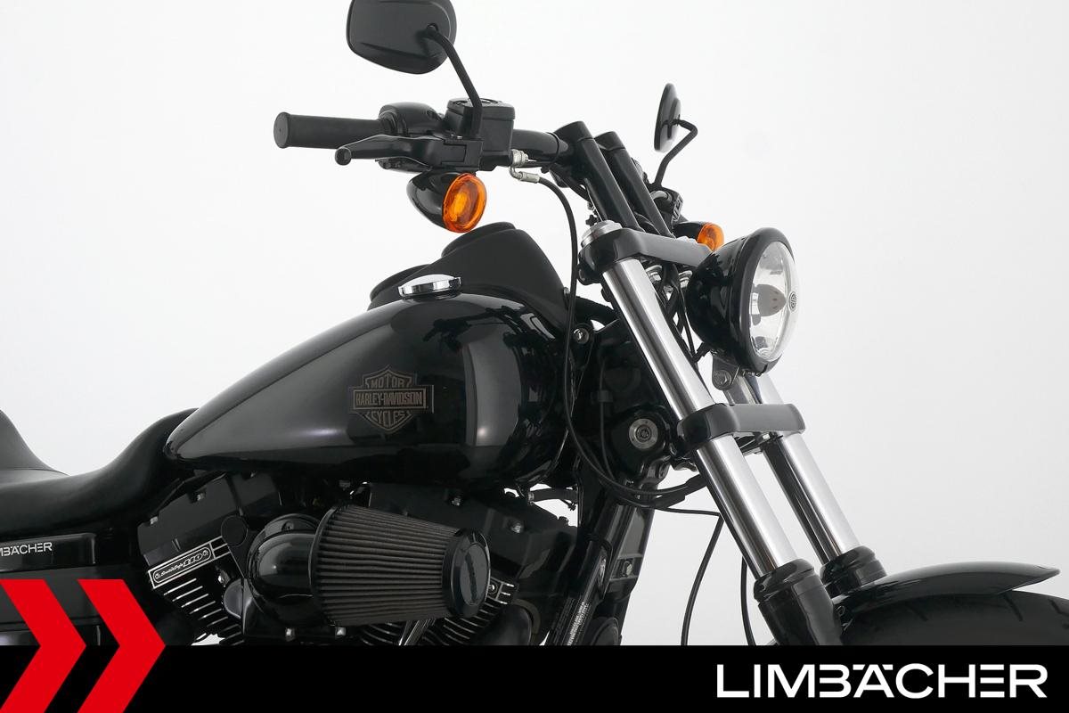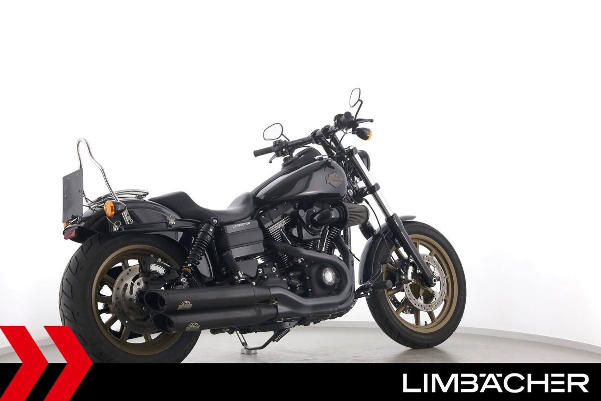 Eine Harley-Davidson Dyna Low Rider S FXDLS aus zweiter Hand in gepflegtem Zustand u.a. mit Jekill&Hyde-Klappenauspuff sowie Custom-Kennzeichenhalter.