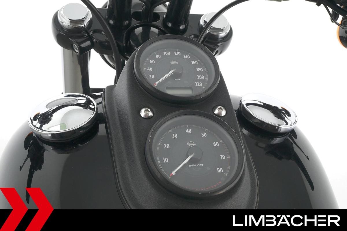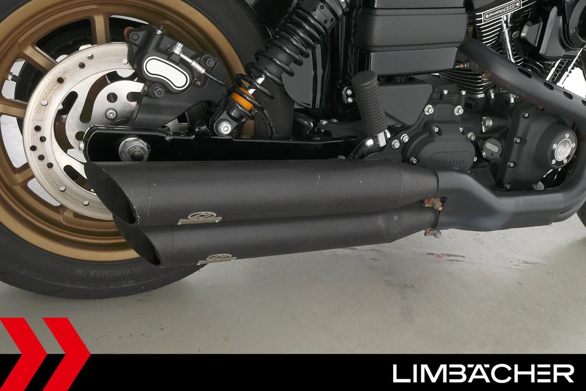 Eine Harley-Davidson Dyna Low Rider S FXDLS aus zweiter Hand in gepflegtem Zustand u.a. mit Jekill&Hyde-Klappenauspuff sowie Custom-Kennzeichenhalter.