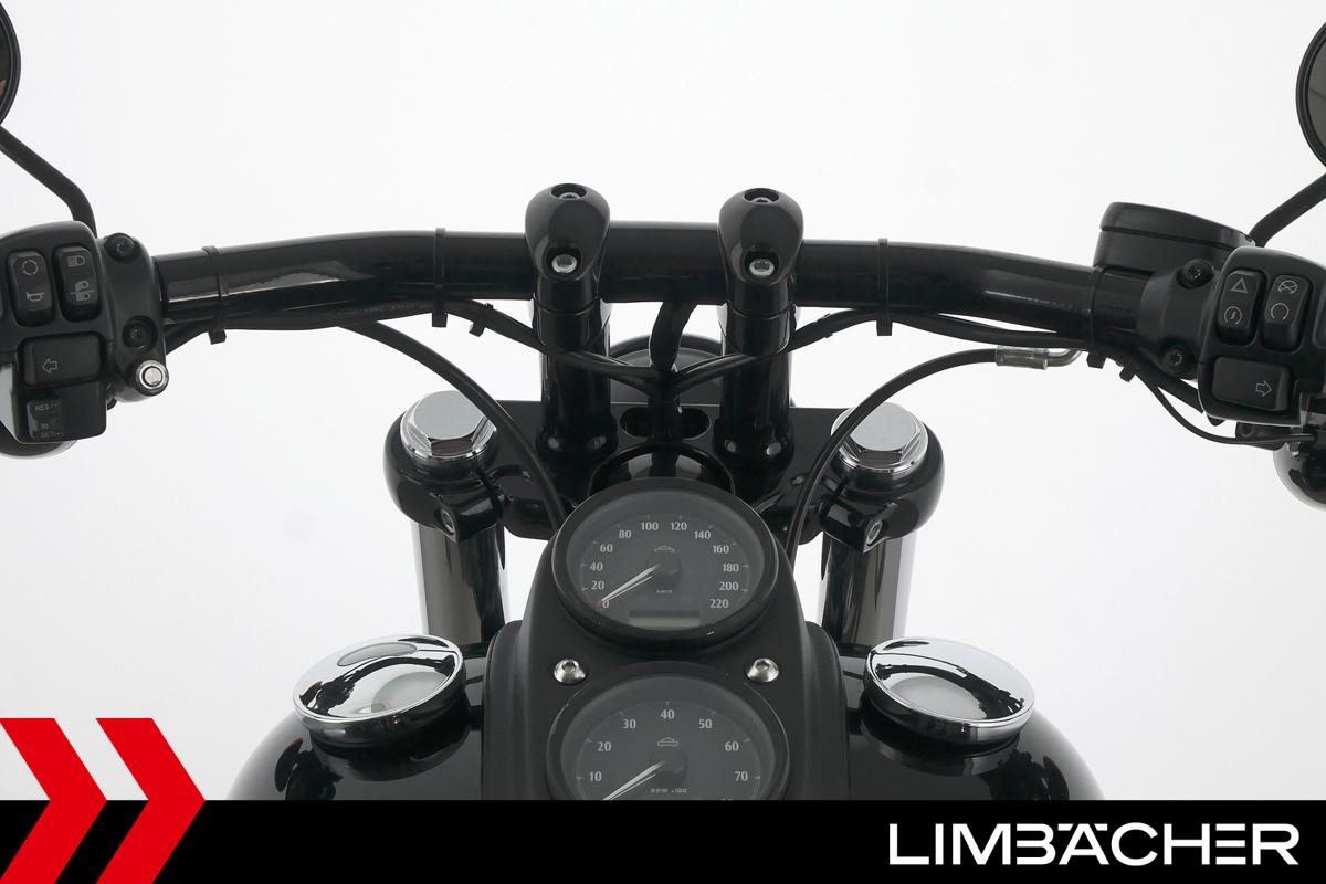 Eine Harley-Davidson Dyna Low Rider S FXDLS aus zweiter Hand in gepflegtem Zustand u.a. mit Jekill&Hyde-Klappenauspuff sowie Custom-Kennzeichenhalter.