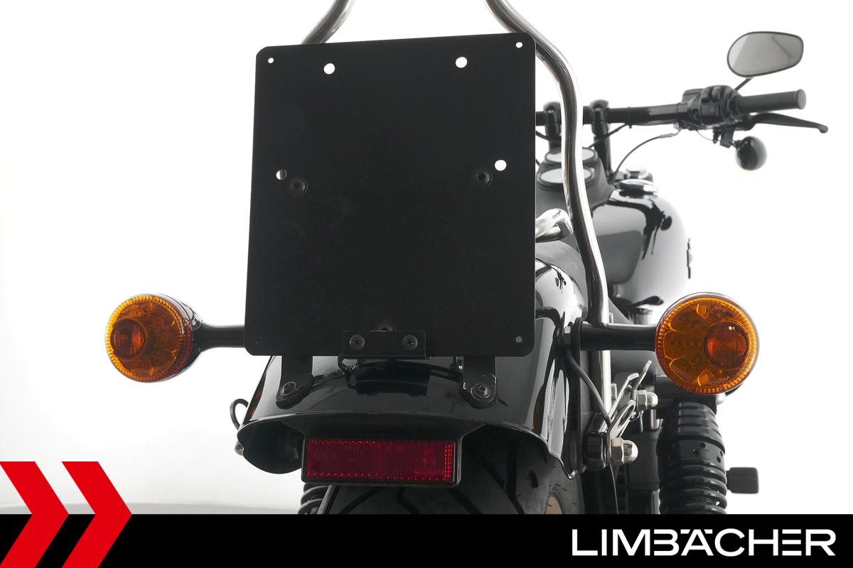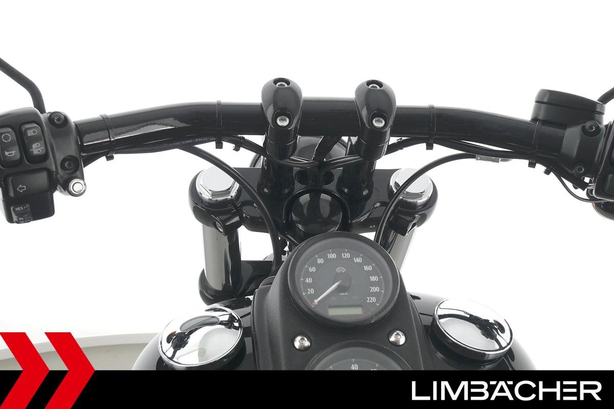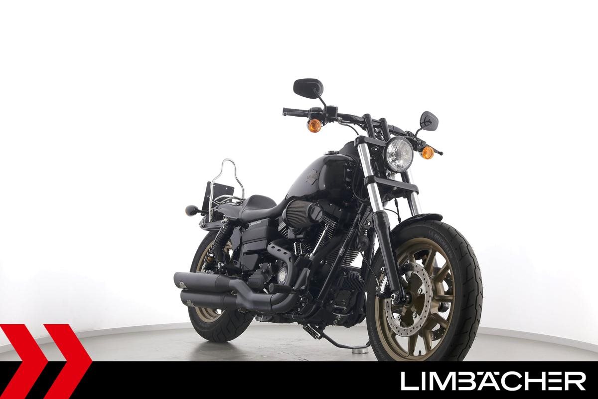 Eine Harley-Davidson Dyna Low Rider S FXDLS aus zweiter Hand in gepflegtem Zustand u.a. mit Jekill&Hyde-Klappenauspuff sowie Custom-Kennzeichenhalter.