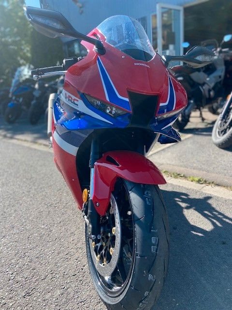 Das macht für uns die Faszination des Rennsports aus. Wir sind seit jeher dem Rennsport verbunden und durch die Feedbacks von HRC und unseren Fahrern haben wir die neue CBR1000RR-R Fireblade hervorgebracht. Sie zeichnet sich durch höhere Leistung im mittleren Drehzahlbereich aus, die durch Verbesserungen am Ansaugsystem und am Zylinderkopf erreicht wurde, sowie durch die überarbeitete Übersetzung, die für einen unglaublichen Zug aus der Kurve heraus sorgt. Bei der Spitzenleistung bleibt alles beim Alten. Das Ansprechverhalten wurde durch die zweimotorige Throttle By Wire-Steuerung noch weiter verbessert, sodass dank der extrem präzisen Gasannahme jede Umdrehung zählt. Gewichtseinsparungen und eine genau ausbalancierte Steifigkeit des Chassis verbessern das Handling und den Grip. Die neu gestalteten Verkleidungswinglets sorgen für mehr Abtrieb bei geringerem Lenkwiderstand. Und ganz gleich, ob du auf einer kurvenreichen Straße unterwegs bist oder Runde für Runde den optimalen Scheitelpunkt anpeilst, die neue Fahrposition bietet dir Freiheit und gleichzeitig völlige Kontrolle. Für Rennen geeignet? Das ist eine reinrassige Rennmaschine.