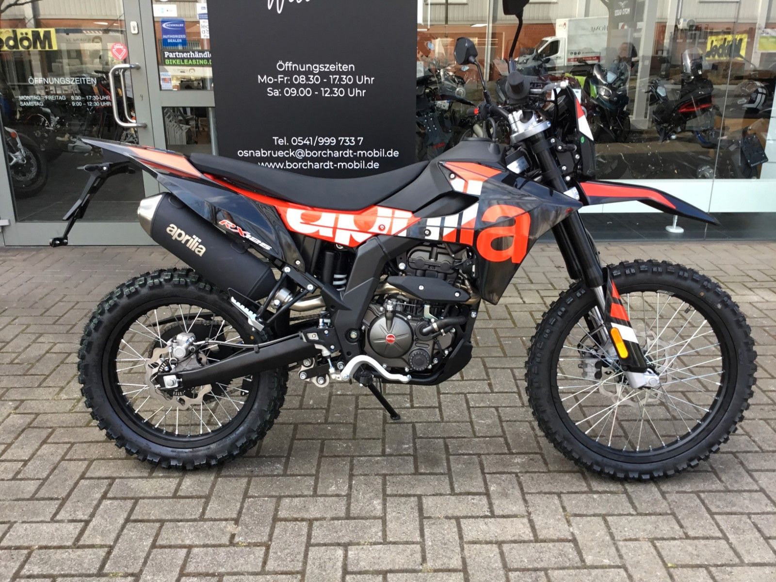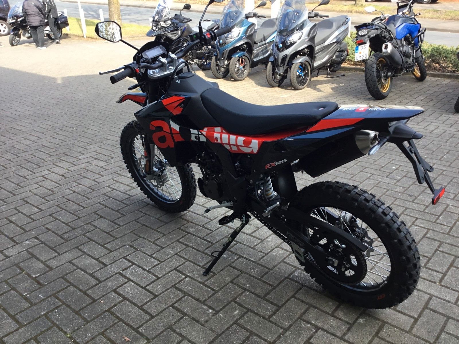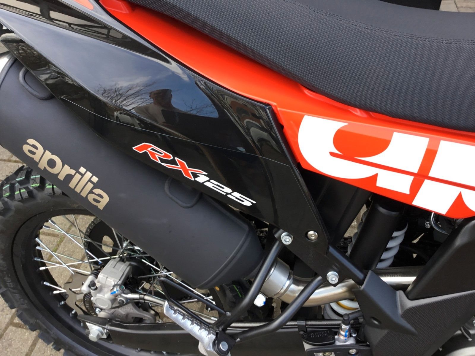 - OFFROAD BIKE MIT GEWINNER-DNA Die Aprilia RX 125 treibt dich zu Abenteuern an, sie ist wendig auf der Straße und unaufhaltsam im Gelände. Sie ist in der Offroad-Tradition von Aprilia verwurzelt und hat die triumphalen Siege des Aprilia Tuareg Rally in seiner DNA. Dank raffinierter technischer Lösungen und eines modernen, Euro 5+ konformen Motors ist die RX 125 bereit, sich jeder täglichen Herausforderung zu stellen.