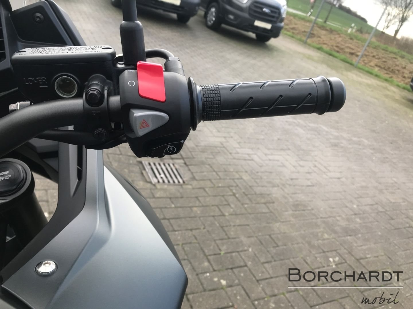 Dieses Motorrad hat alles, was du brauchst. Das brandneue 5-Zoll-TFT-Farbdisplay mit hintergrundbeleuchteter Steuerung bei natürlicher Handhaltung lässt sich unter allen Bedingungen besser ablesen. Bei beiden Komponenten wurde höchster Wert auf Bedienkomfort gelegt und das Display verfügt über eine Anti-Glare-Beschichtung. Außerdem ist für umfassende Konnektivität über die Honda RoadSync App gesorgt. Erstmalig in dieser Klasse erhältst du per Android- und iOS-Smartphones Zugriff auf Turn-by-Turn-Bildschirmnavigation. Außerdem kannst du Anrufe tätigen und entgegennehmen oder Musik hören.