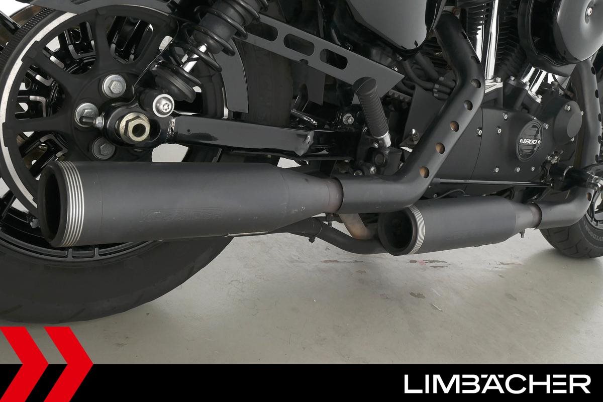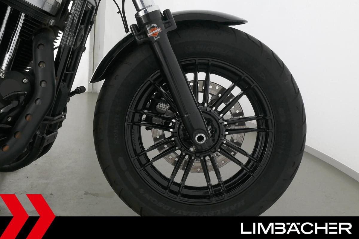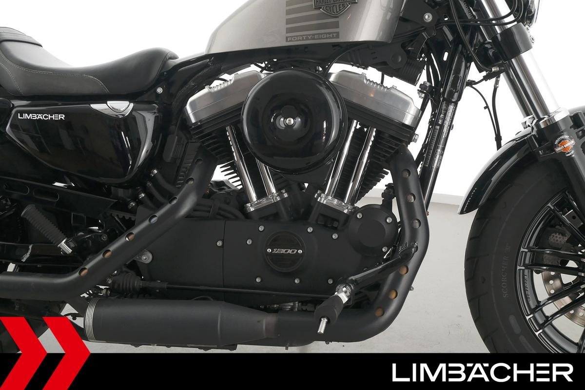 Eine scheckheftgepflegte Harley-Davidson Sportster XL 1200 X Forty Eight aus zweiter Hand in gepflegtem Zustand u.a. mit Kesstech-Klappenauspuff sowie Soziussitzbank und Soziusrasten.