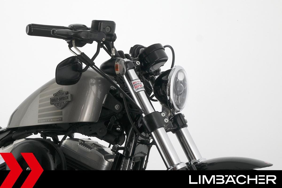 Eine scheckheftgepflegte Harley-Davidson Sportster XL 1200 X Forty Eight aus zweiter Hand in gepflegtem Zustand u.a. mit Kesstech-Klappenauspuff sowie Soziussitzbank und Soziusrasten.