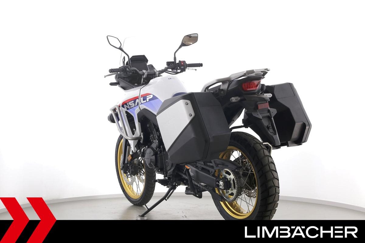 Eine Honda XL 750 Transalp als Neufahrzeug u.a. mit Seitenkoffer-System und Zusatzscheinwerfern.