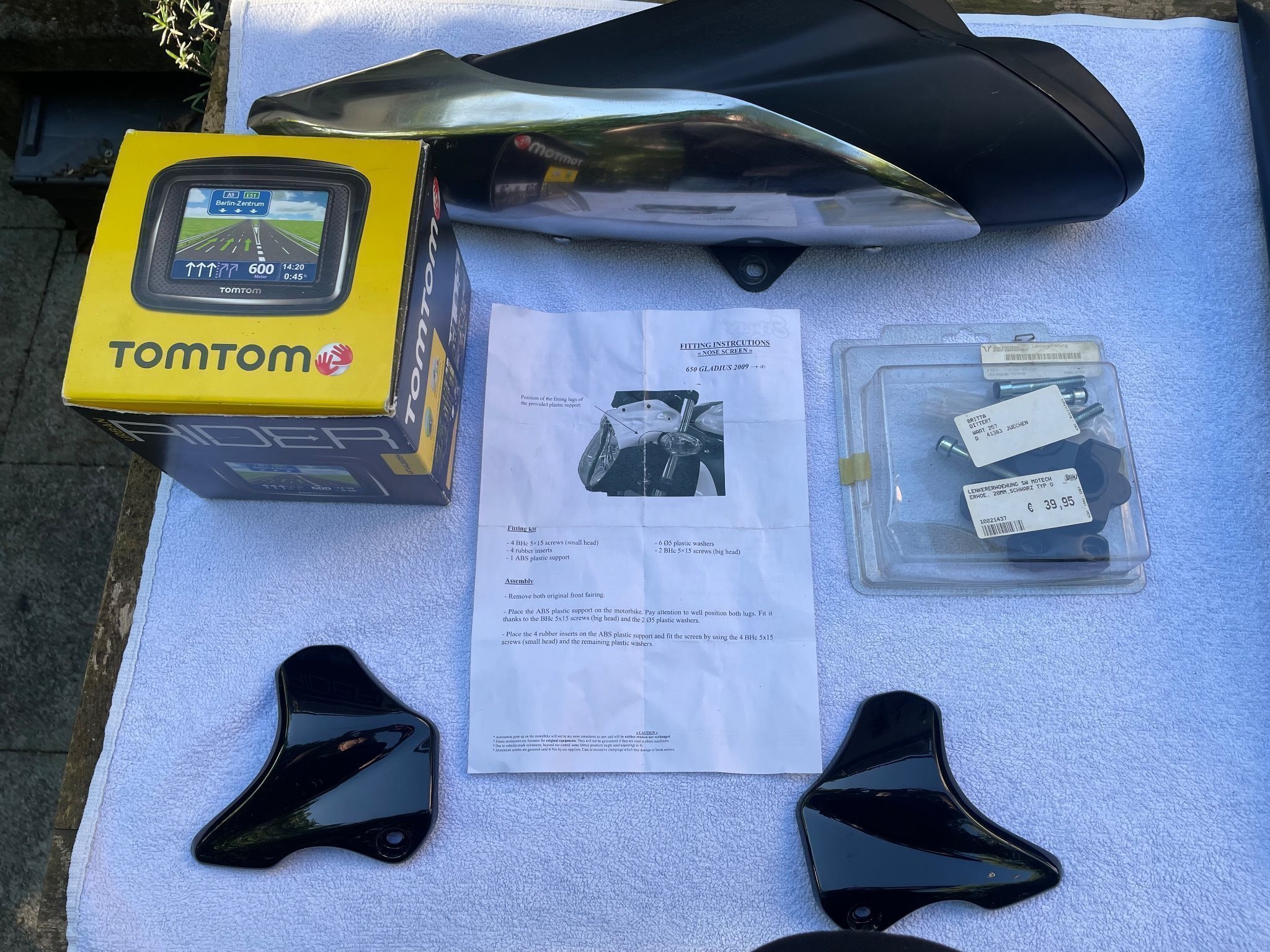 Alle original Teile sind dabei( Siehe Fotos) dazu gibt es noch ein TomTom Navigationsgerät incl Halterung und einen Tankrucksack.