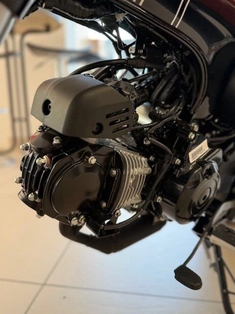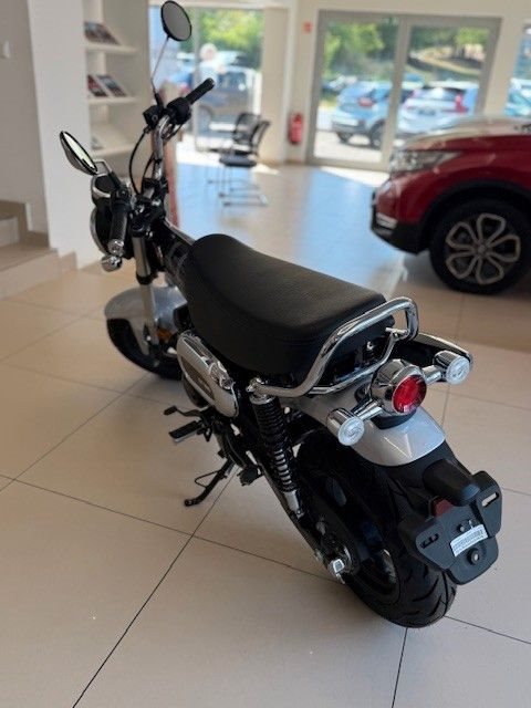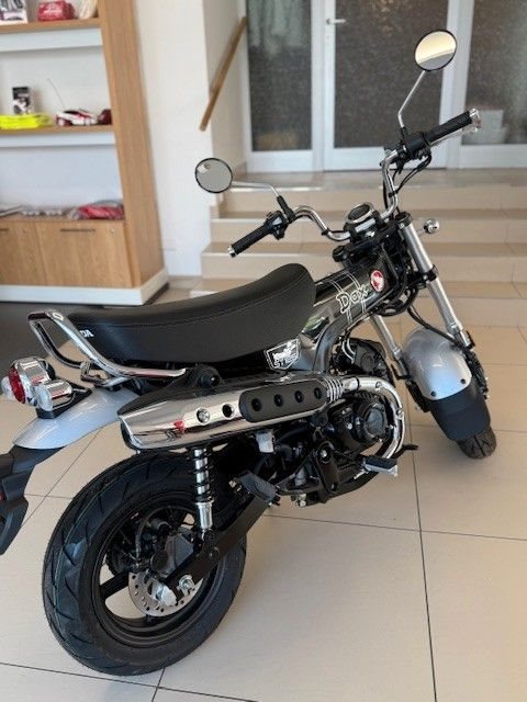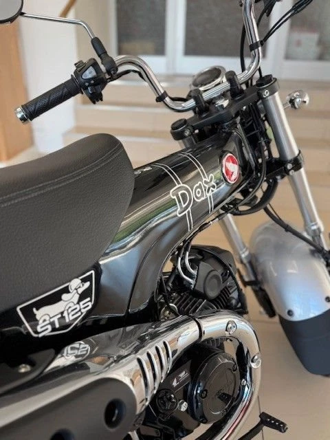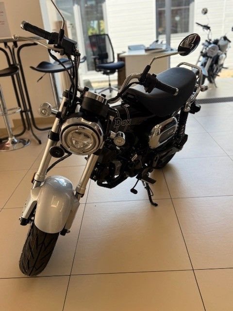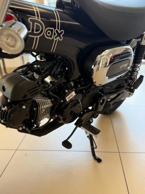 Genau aus diesem Grund ist die Dax wieder da. Sie ist ein echtes Kind der 1960er-Jahre und was sie damals so gut gemacht hat - kompakte Abmessungen, drehfreudiger Motor und leichte Lenkung - ist heute nur noch besser. Wir haben ihr mehr Leistung mitgegeben sowie den Rahmen, das Fahrwerk und die Bremsen verbessert - beim Wesentlichen bleibt jedoch alles beim Alten: Die Dax macht einfach Spaß.Das robuste wie elegante Mini-Motorrad wurde technisch auf den Stand des 21. Jahrhunderts gebracht. Das unverwechselbare, charmante Design bleibt jedoch bis ins kleinste Detail erhalten, vom hohen Mini-Ape-Lenker und dem nach oben weisenden, Offroad-inspirier- ten Auspuff bis hin zur Doppelsitzbank mit einer Höhe von nur 775 mm. Das hochwertige Fahrwerk mit Upside-Down-Vorderradgabel und Zwillingsstoßdämpfern hinten vermittelt ein angenehmes Fahrgefühl, ebenso wie die breiten Reifen mit perfektem Grip bei unterschied- lichsten Bodenverhältnissen. Das Ein-Kanal-ABS reguliert die Bremskraft der hydraulischen Bremssättel vorn und hinten.Der luftgekühlte 124-cm3-Motor ist langlebig und laufruhig. Die Spitzenleistung beträgt 6,9 kW (9,4 PS) bei einem Drehmoment von 10,8 Nm. Sie sorgt für dynamische Beschleunigung im Stadtverkehr und eine angenehme Reisegeschwindigkeit von 90 km/h zu zweit. Außerdem ist der Motor mit 1,5l/100 km (Messwerte gemäß WMTC) sehr sparsam im Verbrauch. Die Flieh- kraftkupplung macht einen Kupplungshebel überflüssig - einfach Gas geben und losfahren. Geschaltet wird zwischen den vier Gängen per Fußhebel, das System übernimmt dabei die gesamte Arbeit.