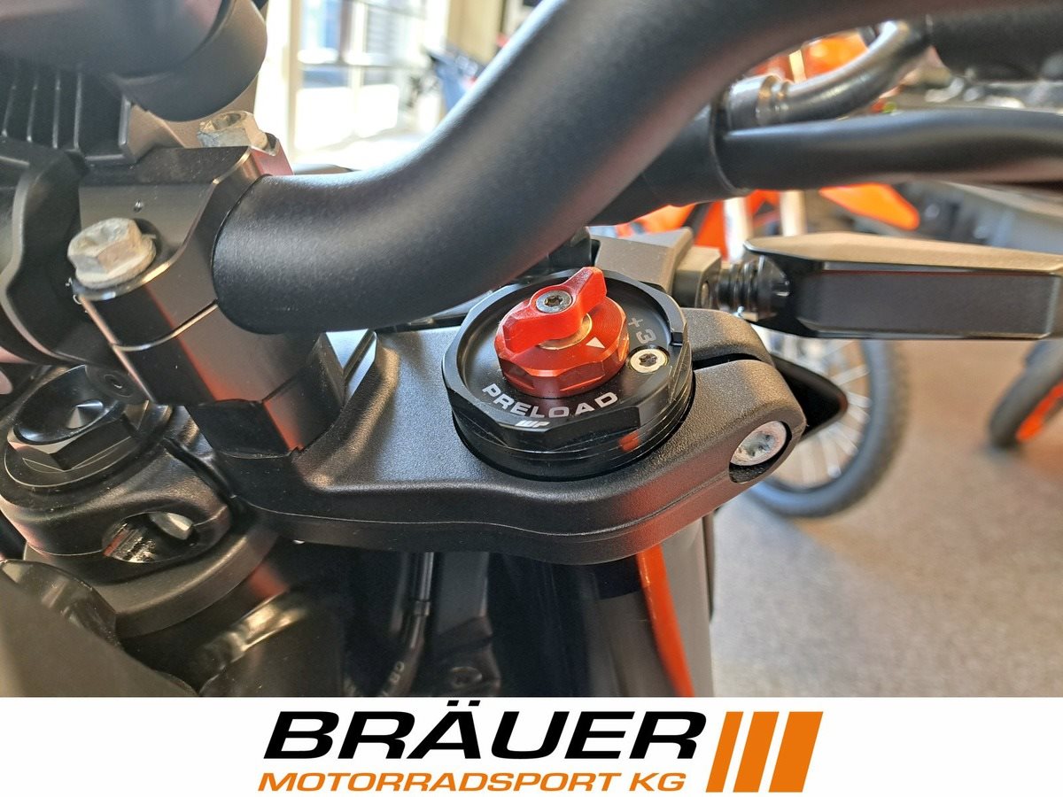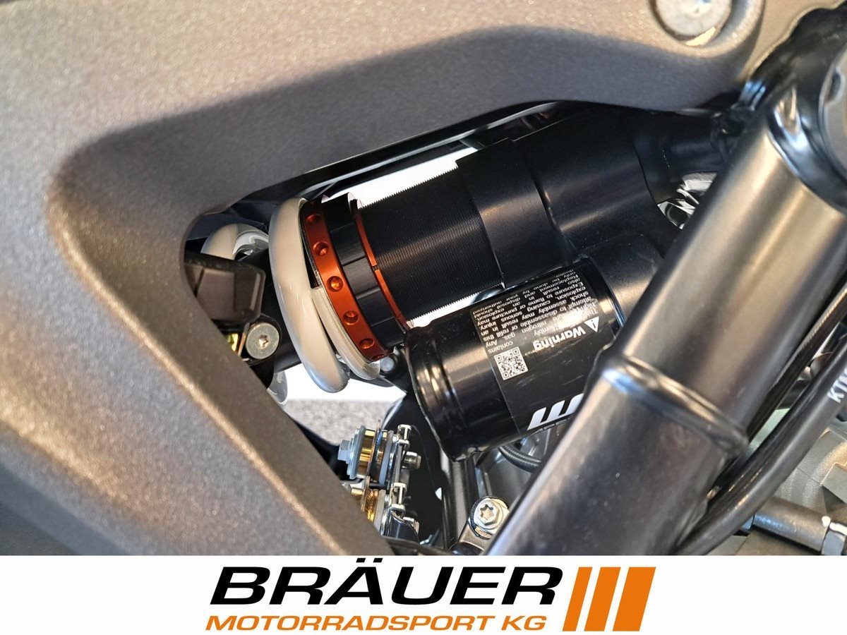 Sondermodell mit volleinstellbarem WP APEX Pro Federbein und WP APEX Pro Cartridge in der Gabel.
