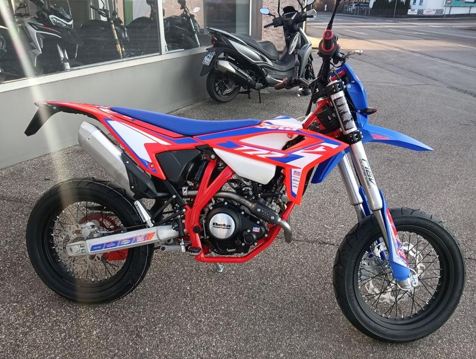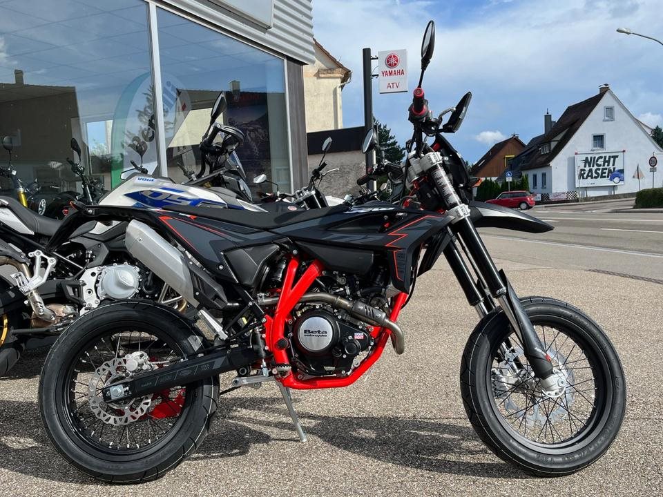 Neufahrzeug vom Vertragshändler mit Werksgarantie, die bei allen Vertragshändlern gültig ist.\n____________________________________________\n\nWir liefern Ihr Motorrad für 79 € bis 50km & 149 € bis 100km (einfache Fahrtstrecke).\nÜber 100 km innerhalb Deutschlandes, ausgenommen der Inseln, für 245€.\n______________________________________________\n\nBarzahlungspreis: 4.990 €\nzzgl. 250 Nebenkosten\n\nSonderfinanzierung auch ohne Anzahlung möglich.\n\nFür Fragen oder Interesse an anderen Fahrzeugen schauen sie doch einfach gerne mal auf unserer Homepage vorbei : www.scherzer-gmbh.de\n\nDie Baureihe Beta RR 125 4T präsentiert sich mit einem reichhaltigeren und vielfältigeren Angebot, das in der Lage ist, den Anforderungen eines immer größeren Publikums gerecht zu werden.\nSo ist die Zielgruppe fur die Beta RR 125 4T breit gefächert: Nachwuchsfahrer, die ihre erste Schritte in der Welt des Motorradsports unternehmen, aber auch ein erwachseneres Publikum auf der Suche nach einem wendigen und sportlichen Motorrad fur eine kostengunstige Mobilität, ohne den Faktor Spaß und die typische Benutzerfreundlichkeit des Betamotor Family-Feelings einzubußen. Die neue Baureihe RR 125 4T 2026, sowohl Enduro als auch Supermoto, lässt mit einem doppelt so großen Angebot garantiert keine Wunsche offen. Ob der Sechzehnjährige auf der Suche nach einer Motard fur jede Menge Spaß in den Kurven mit einem Premium-Modell, der Einsteiger im Bereich Enduro, der Erwachsene auf der Suche nach einem sparsamen Gefährt fur die Stadt, der Routinier auf der Suche nach einem unkomplizierten Fahrzeug oder der Neuling, der seine ersten Schritte auf Straße oder Gelände wagt jetzt gibt es eine 125 4T, die alle Anforderungen erfullt.\n\nBeta glaubt weiterhin an die Aufwertung des Segments 125, und hat deshalb niemals aufgehört, an einer immer umfassenderen Baureihe zu arbeiten, um den Anforderungen möglichst vieler Fans gerecht zu werden.\n\nDie RR Motard 125 R zeichnet sich durch den Einbau des mittlerweile bekannten Antriebs japanischer Herkunft aus, eine Referenz im Segment 125 in puncto Leistungen und Bauteilen, die in Kombination mit einer speziellen Grafik Matt/Gloss mit transparentem Tank , der von den Rennen inspiriert ist, Speichenrädern, Schwinge und Schalldämpfer aus Aluminium, eine Premium-Version des Modells erzeugen, das nicht unbemerkt bleibt.\nDieses Modell wird in seiner technischen und ästhetischen Ausstattung "aufgewertet" um seine höhere Raffinesse hervorzuheben.\n\nDie RR 125 Motard bringt ihre geballte Racing Attitude auf der Straße zum Ausdruck, wo jede Kurve zum puren Adrenalinschub wird. Ausgestattet mit 17"-Felgen fur einen echten Motard-Look!\n\nMinarelli Motor Euro 5+\nTransparenter Tank\nSchwinge aus eloxiertem Aluminium\nSchalldämpfer aus eloxiertem Aluminium\nRoter Rahmen\nSpezielle Grafiken Matt/Gloss, inspiriert von den Beta der Weltmeisterschaft\nSpeichenräder\n\nFAHRWERK\nRAHMEN: STAHL MIT DOPPELSCHLEIFE AUF HOEHE DES AUSLASSKANALS\nRADSTAND: 1425 MM\nGESAMTLAENGE: 2076 MM\nGESAMTBREITE: 830 MM\nGESAMTHOEHE: 1185 MM\nSITZHOEHE: 890 MM\nBODENFREIHEIT: 290 MM\nANBAUHOEHE RASTEN: 360 MM\nTROCKENGEWICHT: 107,0 KG (VORN 53,0 KG; HINTEN 54,0 KG)\nTANKINHALT: 7,5 L\nRESERVE: 1,5 L\nCOOLING SYSTEM CAPACITY: 620 CC\nGABEL: HYDRAULISCH USD MIT Ø 41 MM STANDROHR\nFEDERUNG HINTEN: MONOSHOCK MIT PROGRESSIVER HEBELEI\nFEDERWEG VORN: 265 MM\nFEDERWEG HINTEN: 270 MM\nBREMSE VORN: SCHEIBE Ø260 MM MIT INTEGRAL BREMSSYSTEM\nBREMSE HINTEN: SCHEIBE Ø220 MM MIT SCHWIMMENDER EINKOLBEN-BREMSZANGE\nFELGE VORN: 2,50 X 17\nFELGE HINTEN: 3,50 X 17\nREIFEN VORN: 110/80-17\nREIFEN HINTEN: 130/70-17\nTYP: 1-ZYLINDER, 4-TAKT, LC\nHUBRAUM: 124,66 CC\n\n\nIrrtümer, Änderungen und Zwischenverkauf vorbehalten!