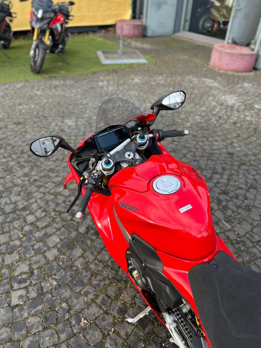 Serienmäßig ausgestattet mit geschmiedeten Alu-Felgen, HypureT Monobloc-Bremsen und Pirelli Supercorsa V4-Bereifung, bringt die Panigale V4 S alles mit, was man für sportliche Ausfahrten oder Trackdays braucht. Ob als Performance-Bike mit Carbon-Paket oder einfach in der Serienkonfiguration - wer die nächste Evolutionsstufe der V4 erleben will, sollte sich selbst ein Bild machen. Jetzt Probefahrt vereinbaren - wir freuen uns auf Deinen Besuch!