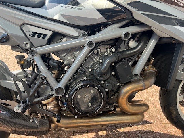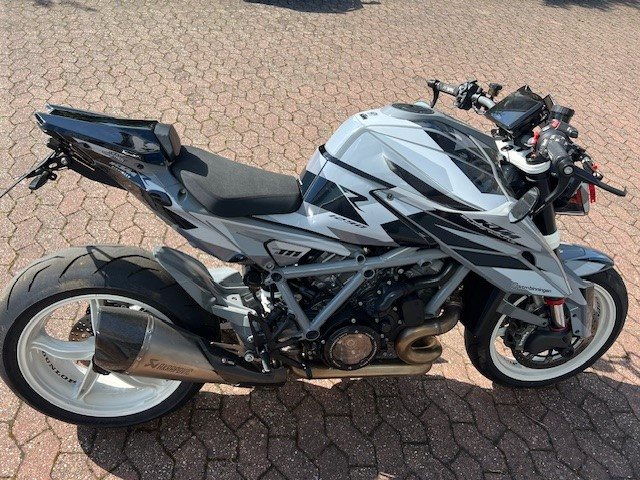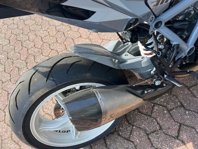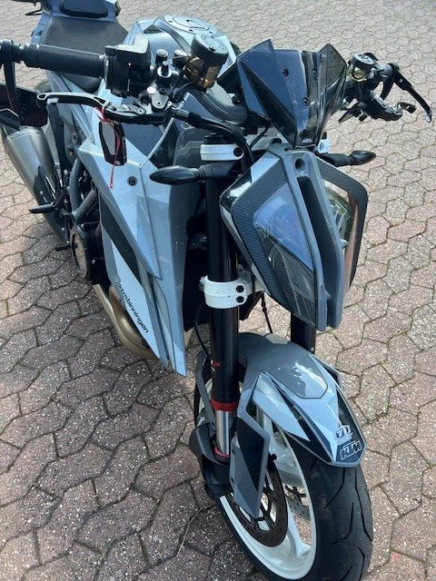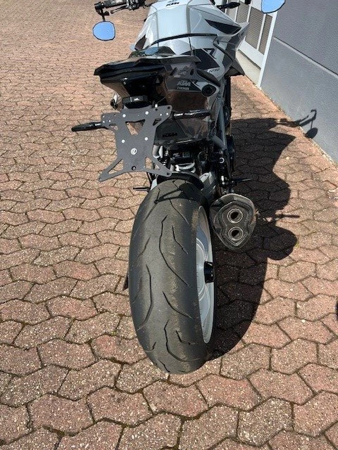 Bei dem Fahrzeug handelt es sich um einen instandgesetzes Unfallfahrzeug. Das Fahrzeug wurde wegen Rahmenlackierung in Grau komplett neu aufgebaut und vieles lackiert wie Schwinge, Kettenschutz usw. und mitr einem Dekorsatz versehen. Die Felgen wurden in weiss lackiert sowie die untere und obere Gabelbrücke. Darüber hinaus noch einige PowerParts Artikel wie CNC Bremshabel & Kupplungshebel, durchsichtiger Kupplungsdeckel, kurzem Kennzeichenhalter, Akra Auspuff, Flyscreen, Lenkerendenspiegel usw..