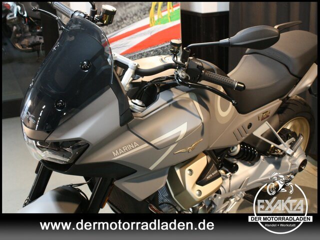 Zur Feier der engen Verbindung zwischen der Moto Guzzi Ursprungsgeschichte und dem Gründungsjahr der Luftstreitkräfte der italienischen Marine präsentiert sich die neue V100 Mandello Aviazione Navale in einer auf 1.913 Exemplare limitierten und nummerierten Special Edition. Die Farbgebung und die Grafik der Moto Guzzi V100 Mandello Aviazione Navale ist von den aktuellen F-35B-Jets der Marine inspiriert. On Top wird diese Limited Edition serienmäßig mit Reifendruck-Kontrollsystem und beheizbaren Griffen ausgestattet. Eine Abdeckplane und eine Erinnerungsplakette gehören ebenfalls zum Lieferumfang.