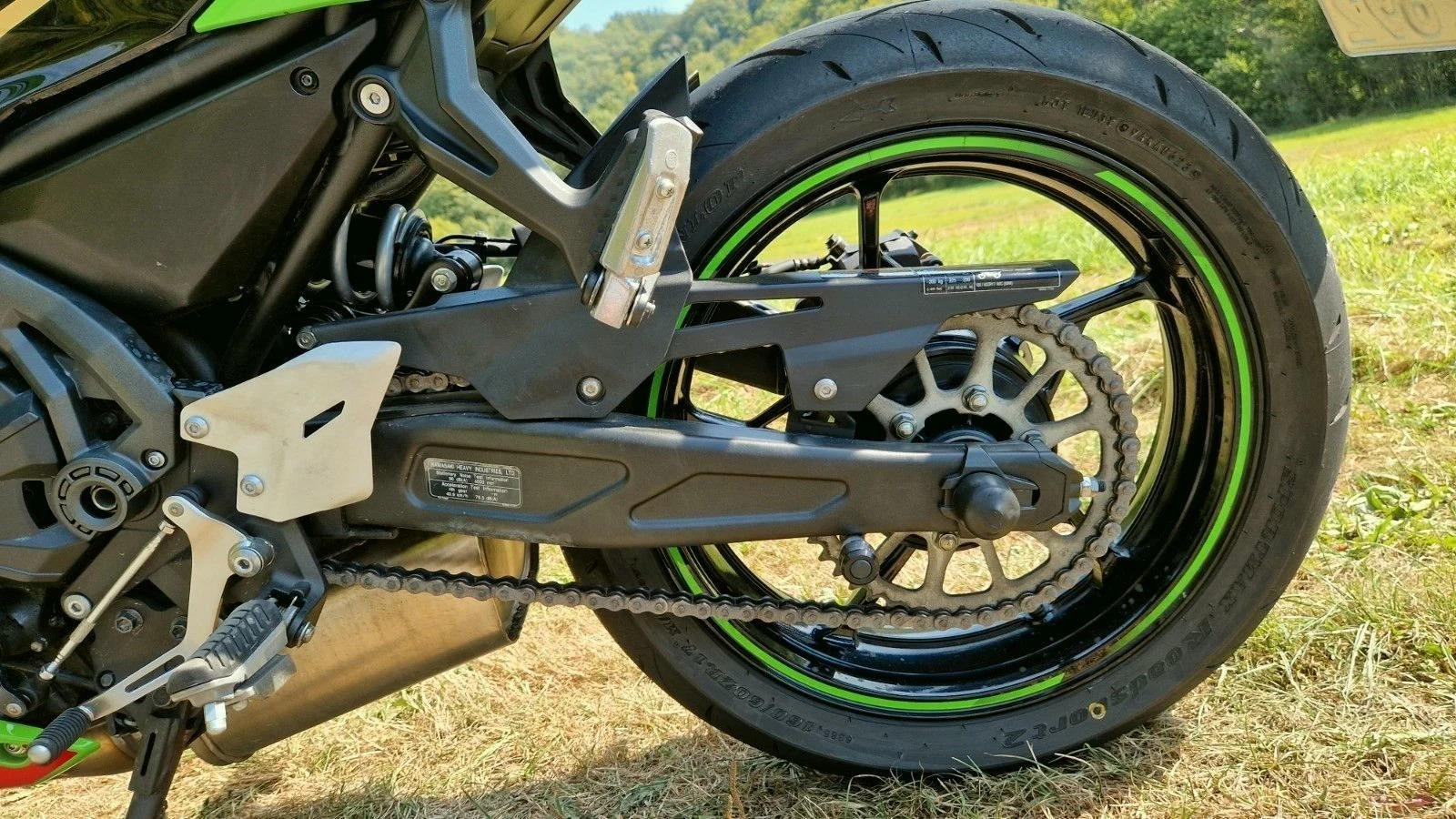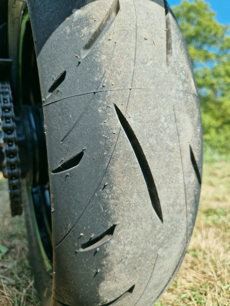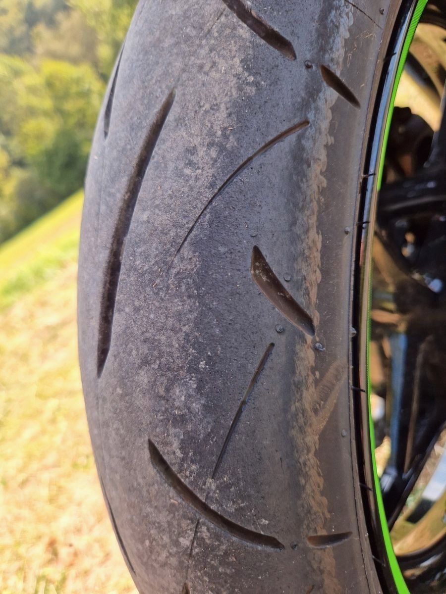 Der Hinterreifen ist neu, er hat vielleicht 350 km runter. Der Vorderreifen ist noch gut.