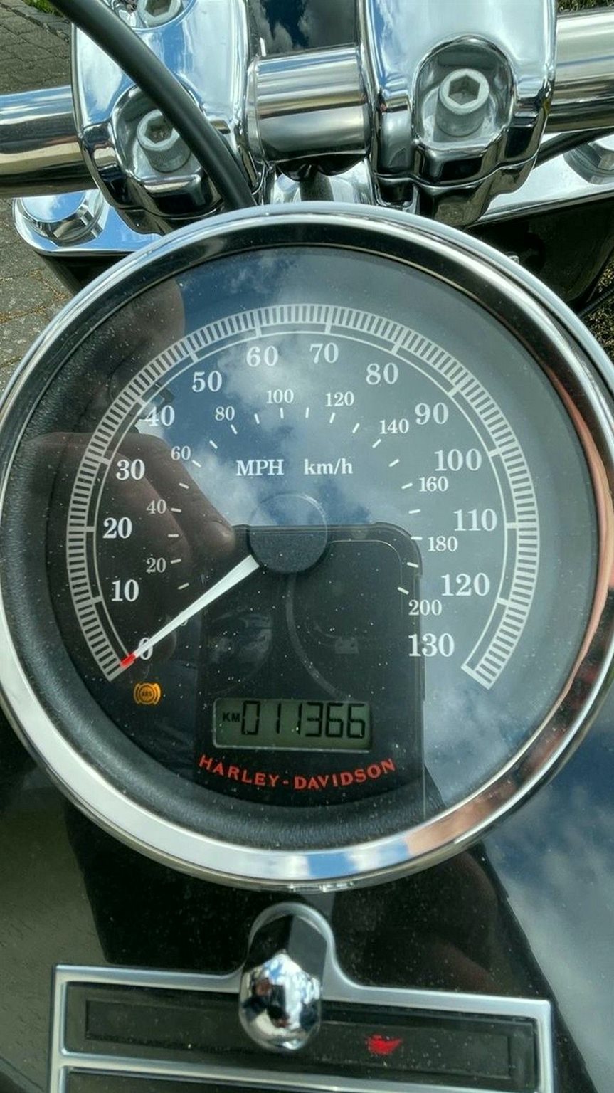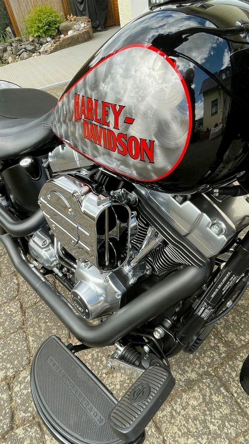 Die Maschine hat eine individuelle Sonderlackierung und einen typischen Gänsehaut-Harley-Sound.