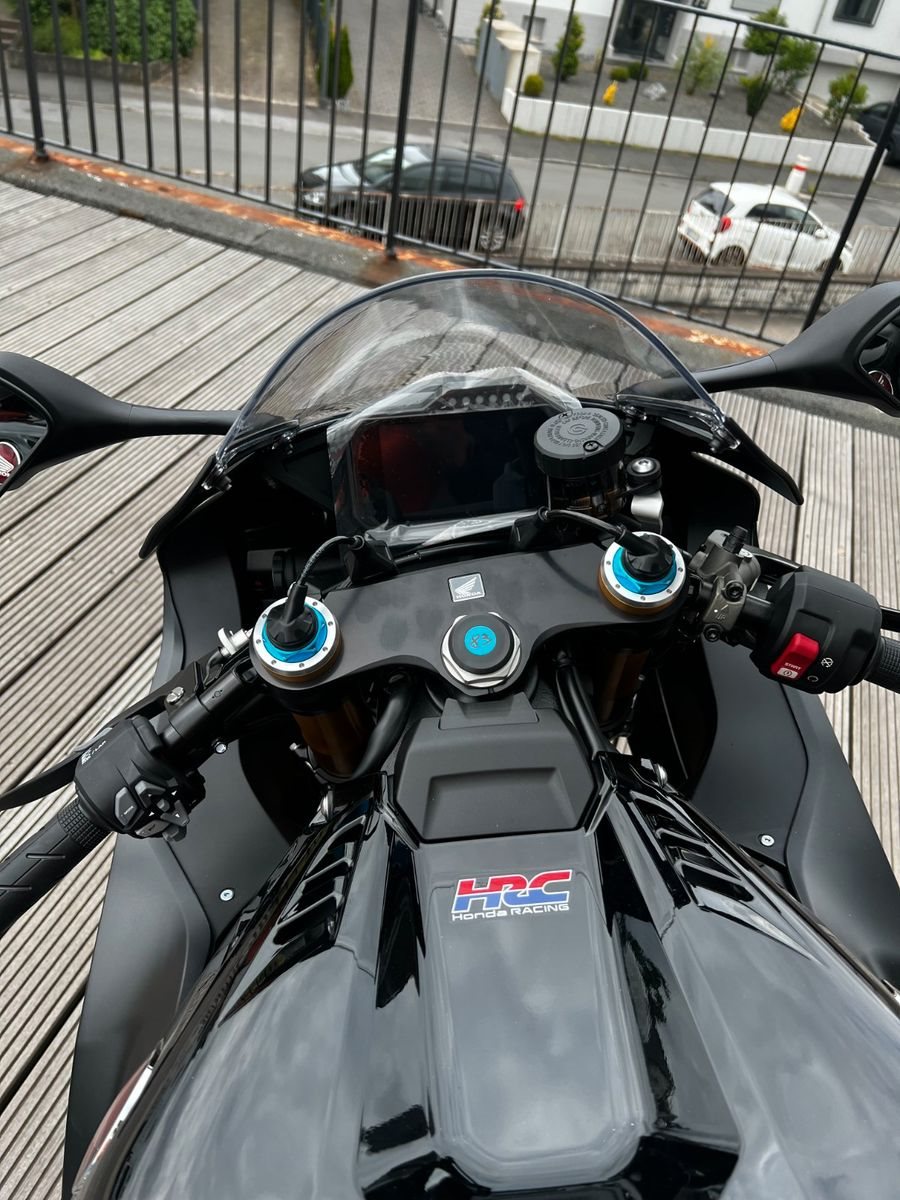 Das macht für uns die Faszination des Rennsports aus. Wir sind seit jeher dem Rennsport verbunden und durch die Feedbacks von HRC und unseren Fahrern haben wir die neue CBR1000RR-R Fireblade hervorgebracht. Sie zeichnet sich durch höhere Leistung im mittleren Drehzahlbereich aus, die durch Verbesserungen am Ansaugsystem und am Zylinderkopf erreicht wurde, sowie durch die überarbeitete Übersetzung, die für einen unglaublichen Zug aus der Kurve heraus sorgt. Bei der Spitzenleistung bleibt alles beim Alten. Das Ansprechverhalten wurde durch die zweimotorige Throttle By Wire-Steuerung noch weiter verbessert, sodass dank der extrem präzisen Gasannahme jede Umdrehung zählt. Gewichtseinsparungen und eine genau ausbalancierte Steifigkeit des Chassis verbessern das Handling und den Grip. Die neu gestalteten Verkleidungswinglets sorgen für mehr Abtrieb bei geringerem Lenkwiderstand. Und ganz gleich, ob du auf einer kurvenreichen Straße unterwegs bist oder Runde für Runde den optimalen Scheitelpunkt anpeilst, die neue Fahrposition bietet dir Freiheit und gleichzeitig völlige Kontrolle. Für Rennen geeignet? Das ist eine reinrassige Rennmaschine.